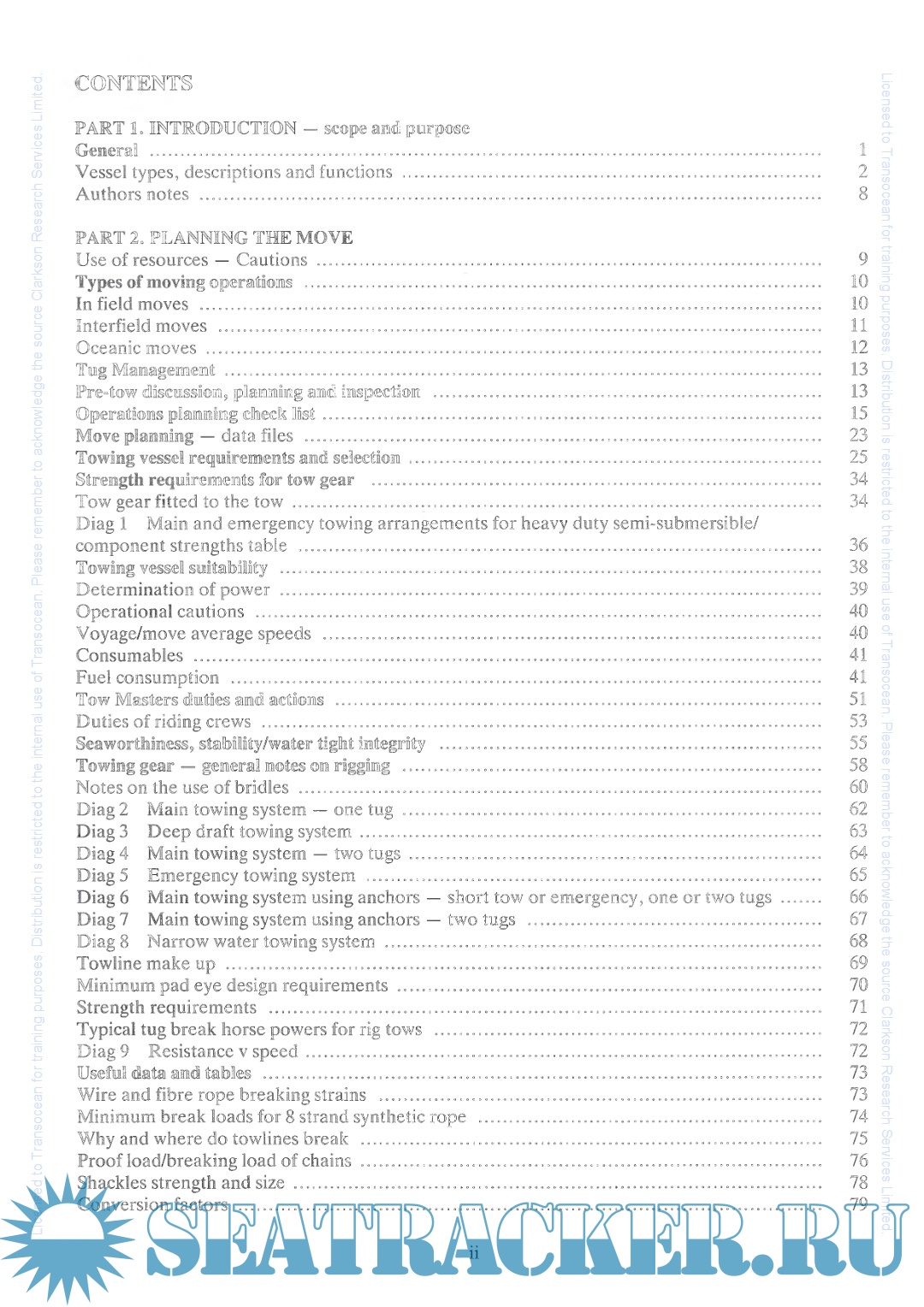 The transition from stationary operations to transit operations requires the crews to make quite radical changes to behaviour and routine patterns as well as putting into operation procedures and plans which differ considerably from their normal stationary life. The majority of operations covered are those where some tug assistance is utilised although this may be supplemented by the vessels own propulsion systems.