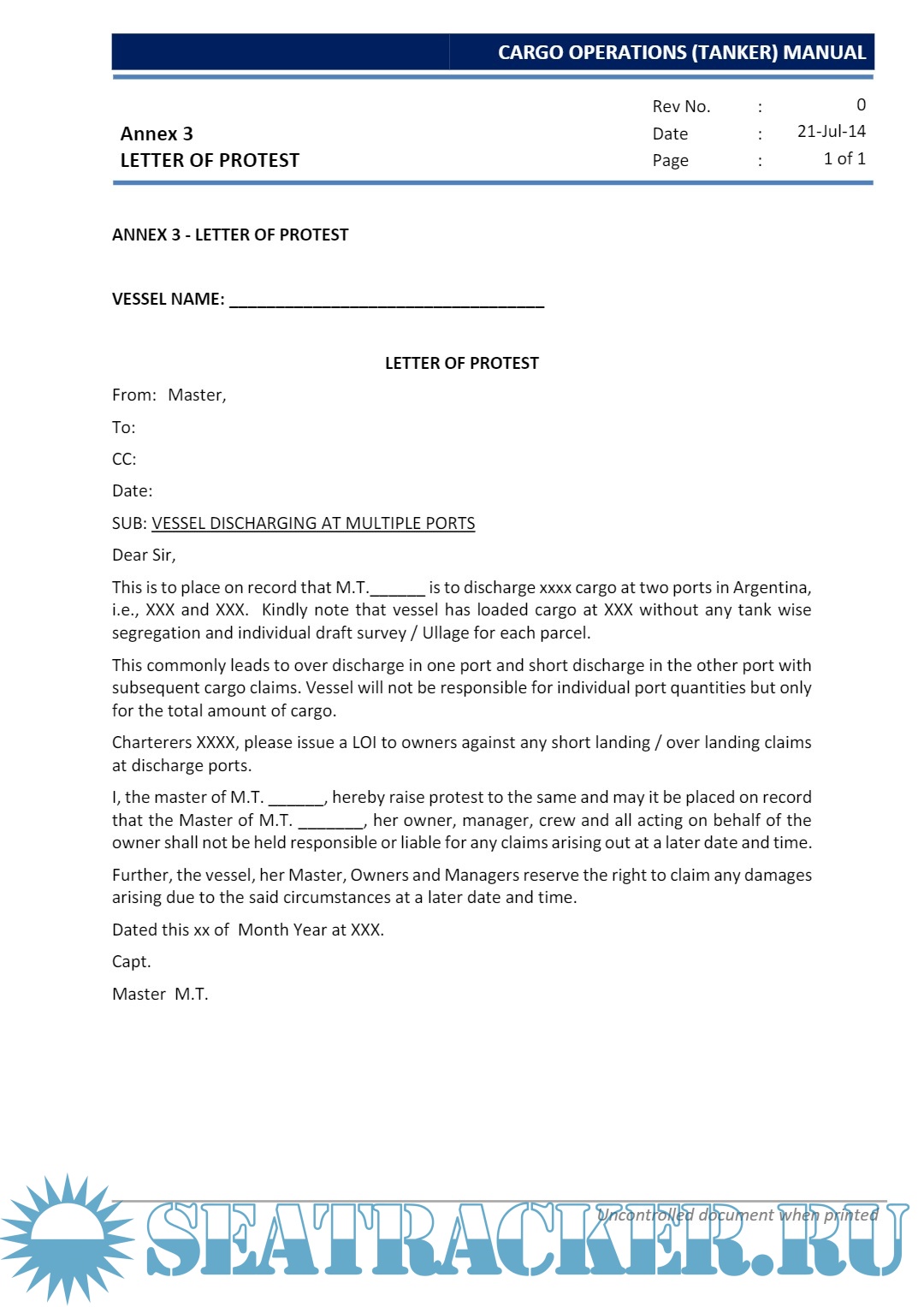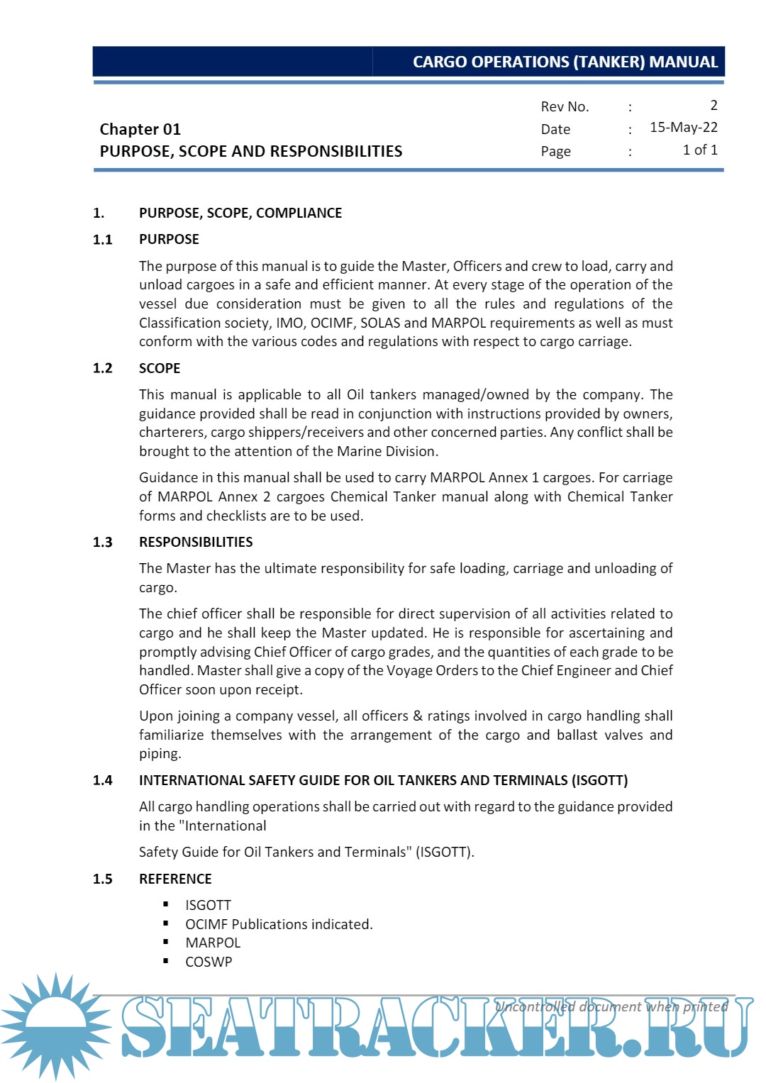 Description: The purpose of this manual is to guide the Master, Officers and crew to load, carry and unload cargoes in a safe and efficient manner. At every stage of the operation of the vessel due consideration must be given to all the rules and regulations of the Classification society, IMO, OCIMF, SOLAS and MARPOL requirements as well as must