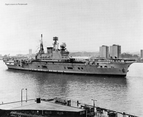 Description: HMS Eagle was an Audacious-class aircraft carrier of the Royal Navy, in service 1951–1972. Until the arrival of the Queen Elizabeth-class aircraft carriers in the 21st century, she and her sister Ark Royal were the two largest Royal Navy aircraft carriers ever built.