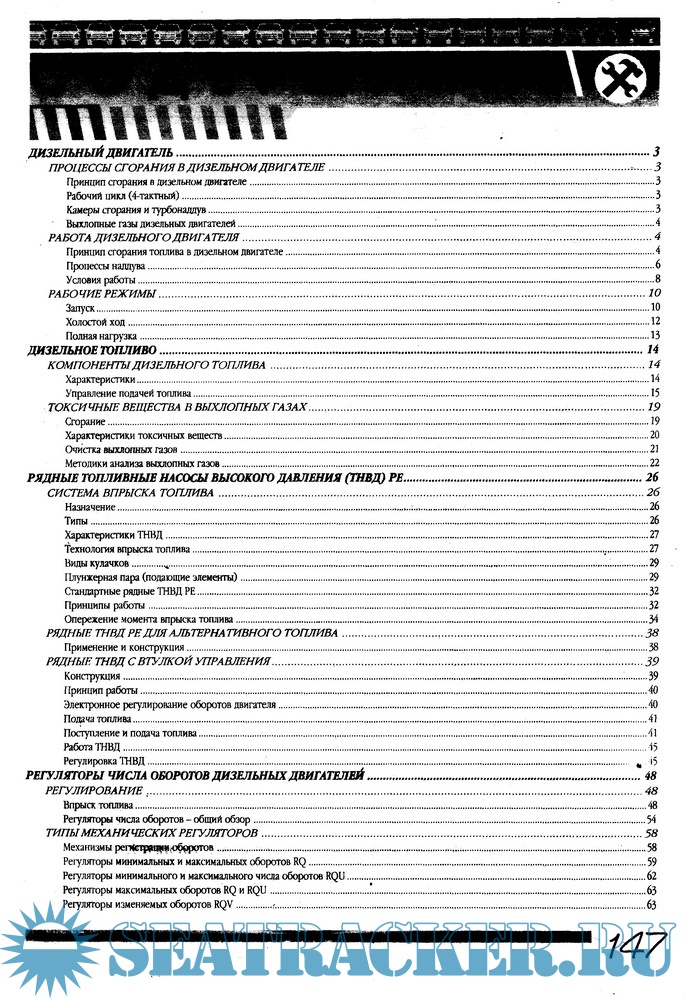В данном руководстве рассматриваются устройства, особенности конструкции и принципы действия разных типов топливных систем, применяемых в дизельных двигателях. Приведены описания наиболее часто встречающихся типов топливных насосов.