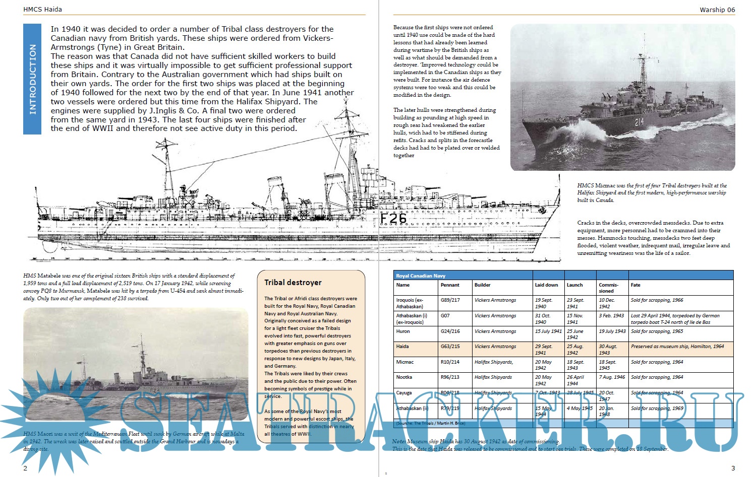 Year: 2016 Language: English Author: Rindert Zinderen Bakker Genre: History Publisher: Walburg Pers Edition: Warship №06 Format: PDF Quality: eBook Pages count: 54 Description: HMCS Haida was a destroyer of the Tribal-class serving in the Royal Canadian Navy (RCN) from 1943-1963. During World War II, Haida sank more enemy surface tonnage than any other Canadian warship. In the Korean War the ship did two tours of duty. Nowadays she is the only surviving Tribal-class destroyer out of 27 units that were constructed between 1937-1945 for the Royal Navy, Royal Australian Navy, and the Royal Canadian Navy.