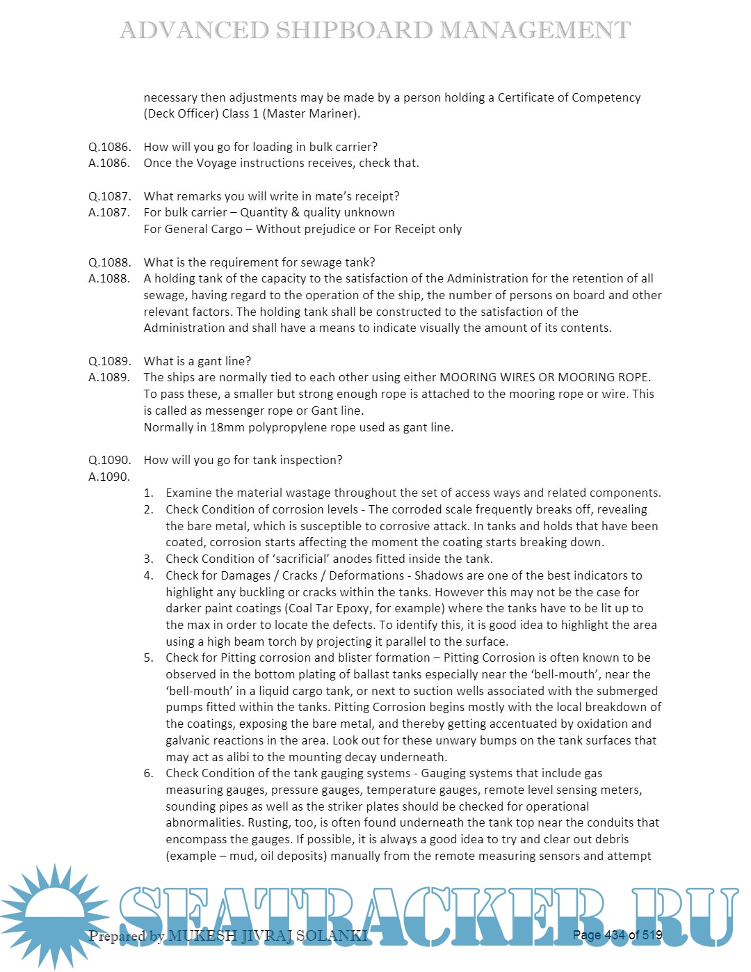 Description: Advanced Shipboard Management (ASM) Question & Answers sets for Oral Exams of M.M.D.(Mercantile Marine Department) - D.G. Shipping, India