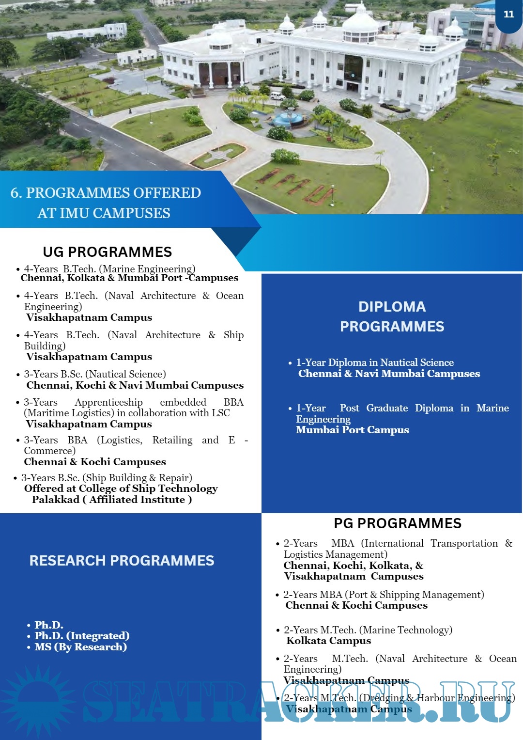 Indian Maritime University (IMU) Academic Brochure for Admissions in Undergraduate and Postgraduate Programmes