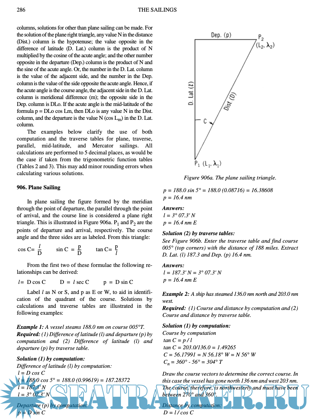 PART 2, PILOTING, mainly emphasizes the practical aspects of navigating a vessel in restricted waters, using both traditional and electronic methods. The closely related problems of finding the course & distance between one known point and another, and using The Sailings, are also discussed.
