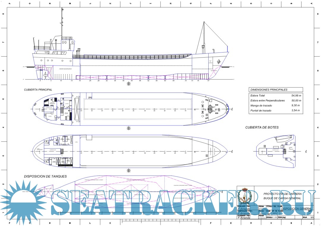 Description: El presente Proyecto Fin de Carrera desarrolla el diseño de un buque costero de carga