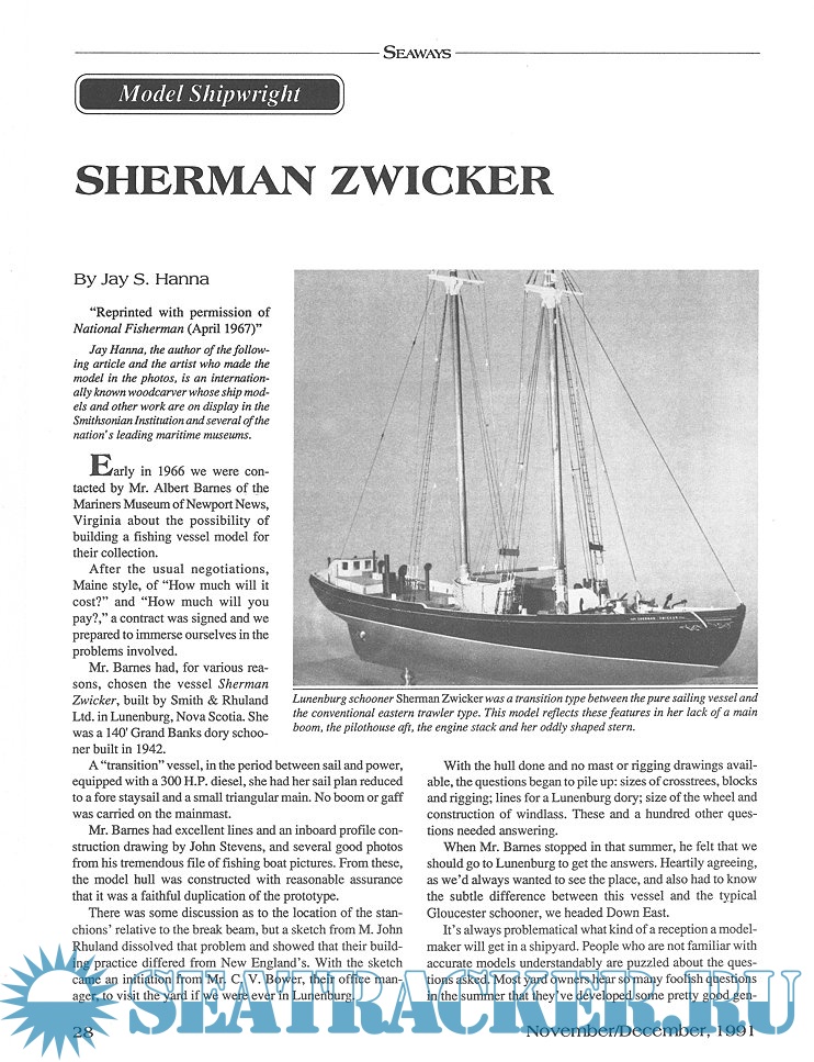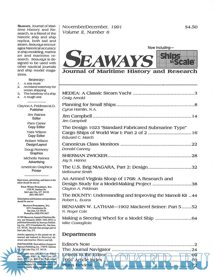 Year: 1991 Language: English Author: Scottie Dayton (Editor) Genre: Periodical (magazine) Edition: 1991-6 Format: PDF Quality: eBook Pages count: 76 Description: Seaway is the home port for Seaways Ships in Scale magazine, the leading workshop and research magazine for the ship modeler. In the magazine we explore all levels of modeling experience, all types of ships, all kinds of models, all historical eras and all construction materials