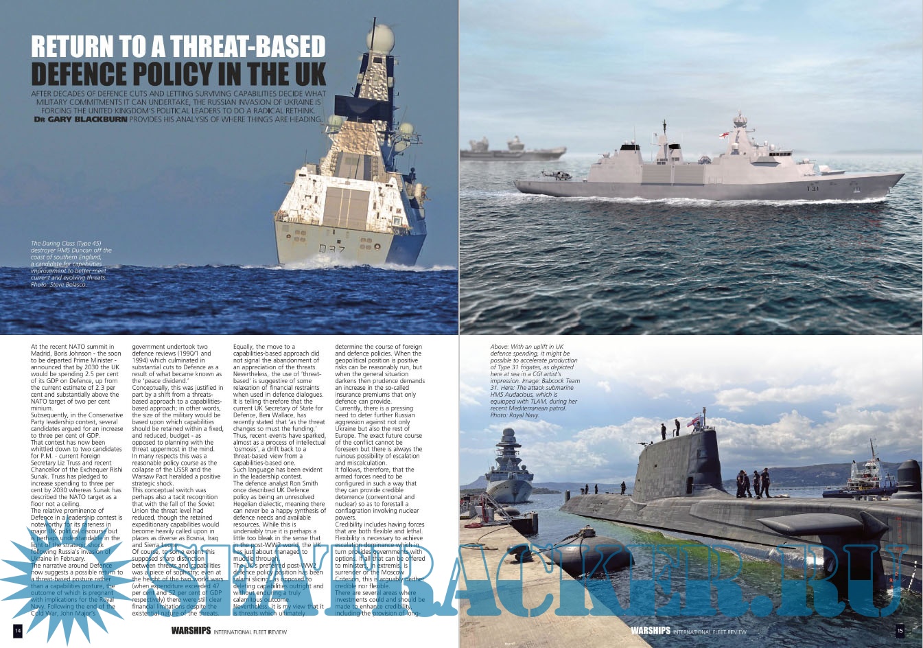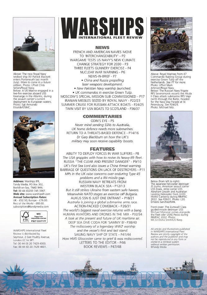 Year: 2022 Language: English Author: Iain Ballantyne (Editor) Genre: Periodical (magazine) Edition: 2022-09 Format: PDF Quality: eBook Pages count: 104 Description: Warships IFR puts the spotlight on the latest developments in the world’s navies. It covers current defence issues and has comments by leading analysts. The magazine regularly includes features on the Royal Navy and the US Navy in addition to incorporating news and features on all other navies across the globe. Warships IFR frequently carries in-depth articles on naval heritage.WARSHIPS International Fleet Review is published 12 times a year by Tandy Media Ltd who also publish Shipping Today & Yesterday (which provides news and features from the world of merchant shipping).