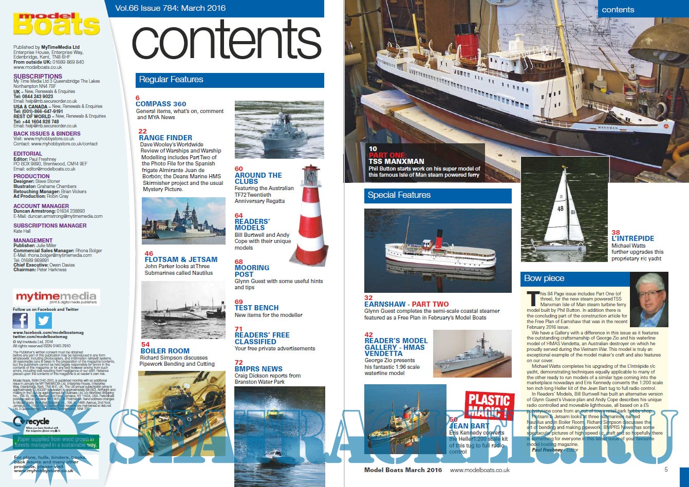Description: Model Boats magazine is a practical and informative read for those with a love for the hobby. It covers the latest news and views from the various clubs and associations around the country, useful hints, tips and step by step guides for those interested in the art of constructing a model boat as well as tests and recommendations of new boats and tools. Floating along behind these are great special features examining in depth different models from narrowboat to destroyer!