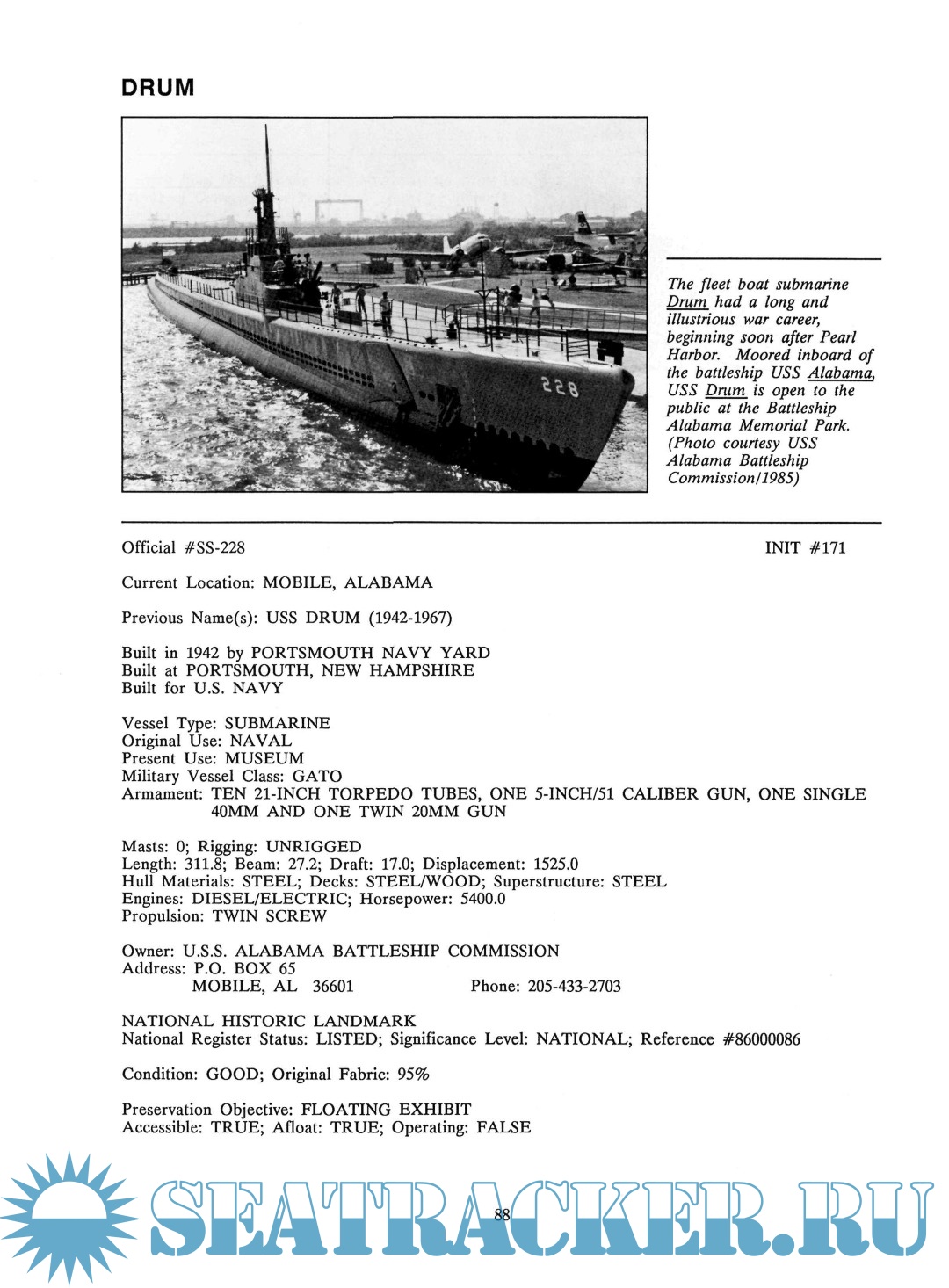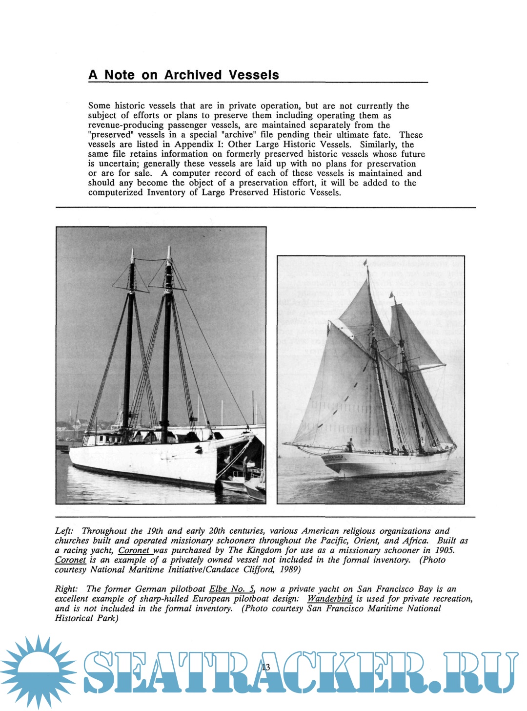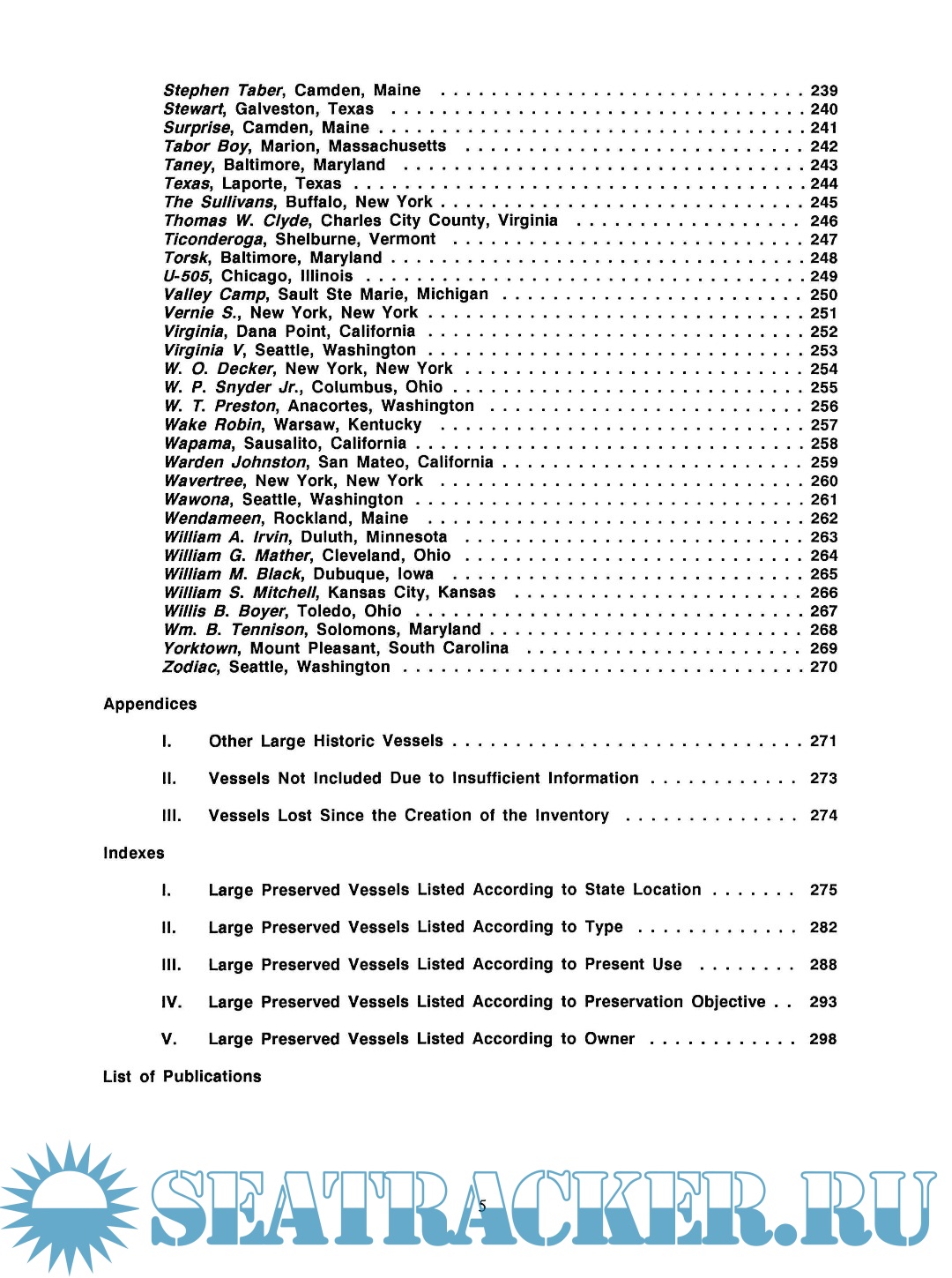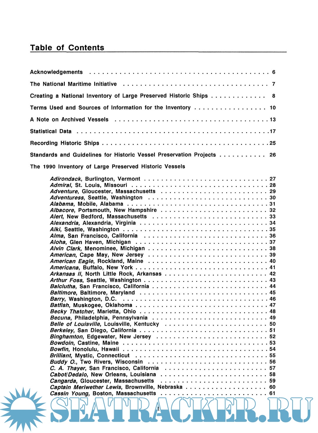 Description: The Inventory of Large Preserved Historic Vessels was prepared to identify the number, types, and condition of the large preserved historic vessels in the United States. It puts on paper a continually updated and revised computerized database that should be consulted as the most up-to-date source of information on historic ships as a group.