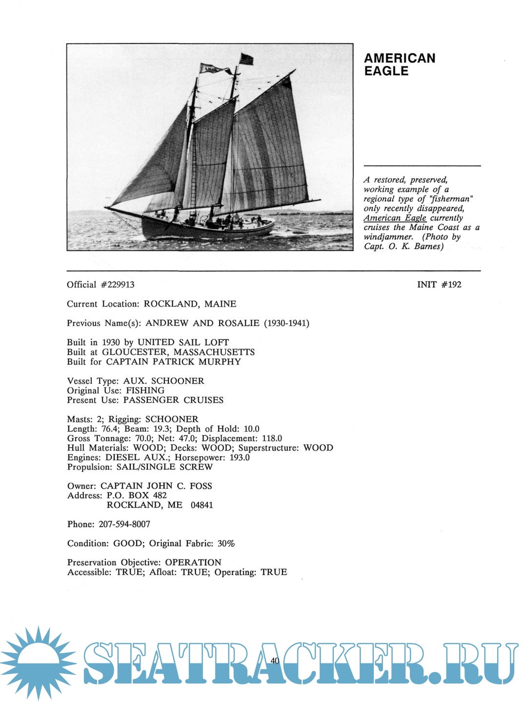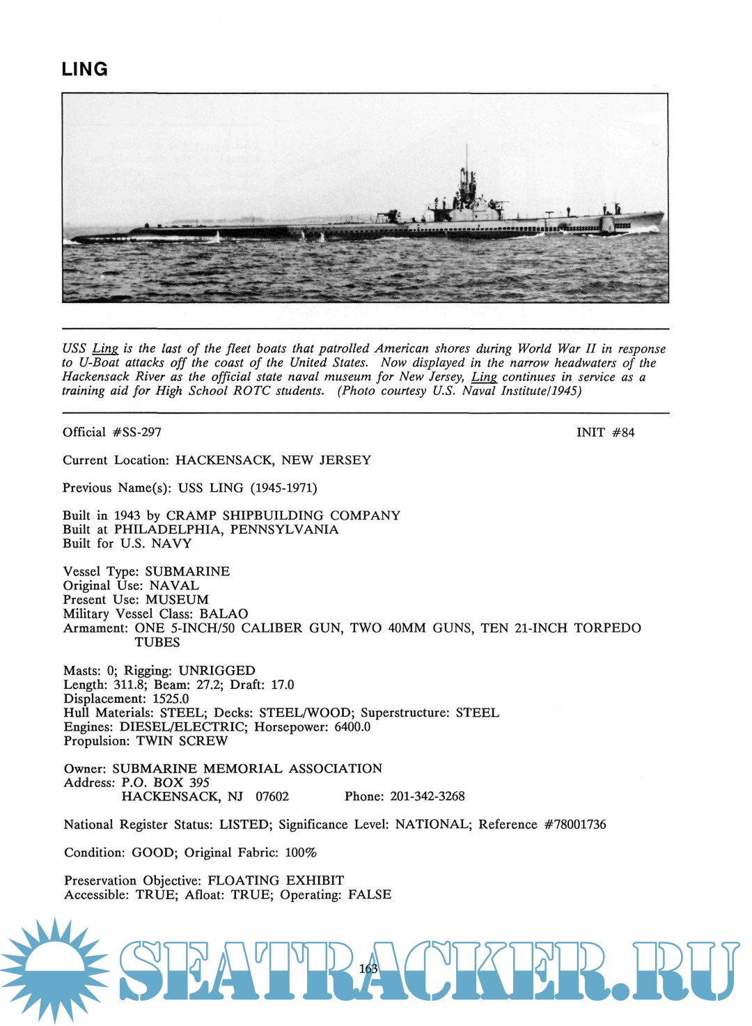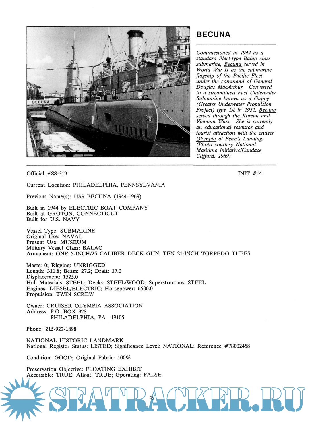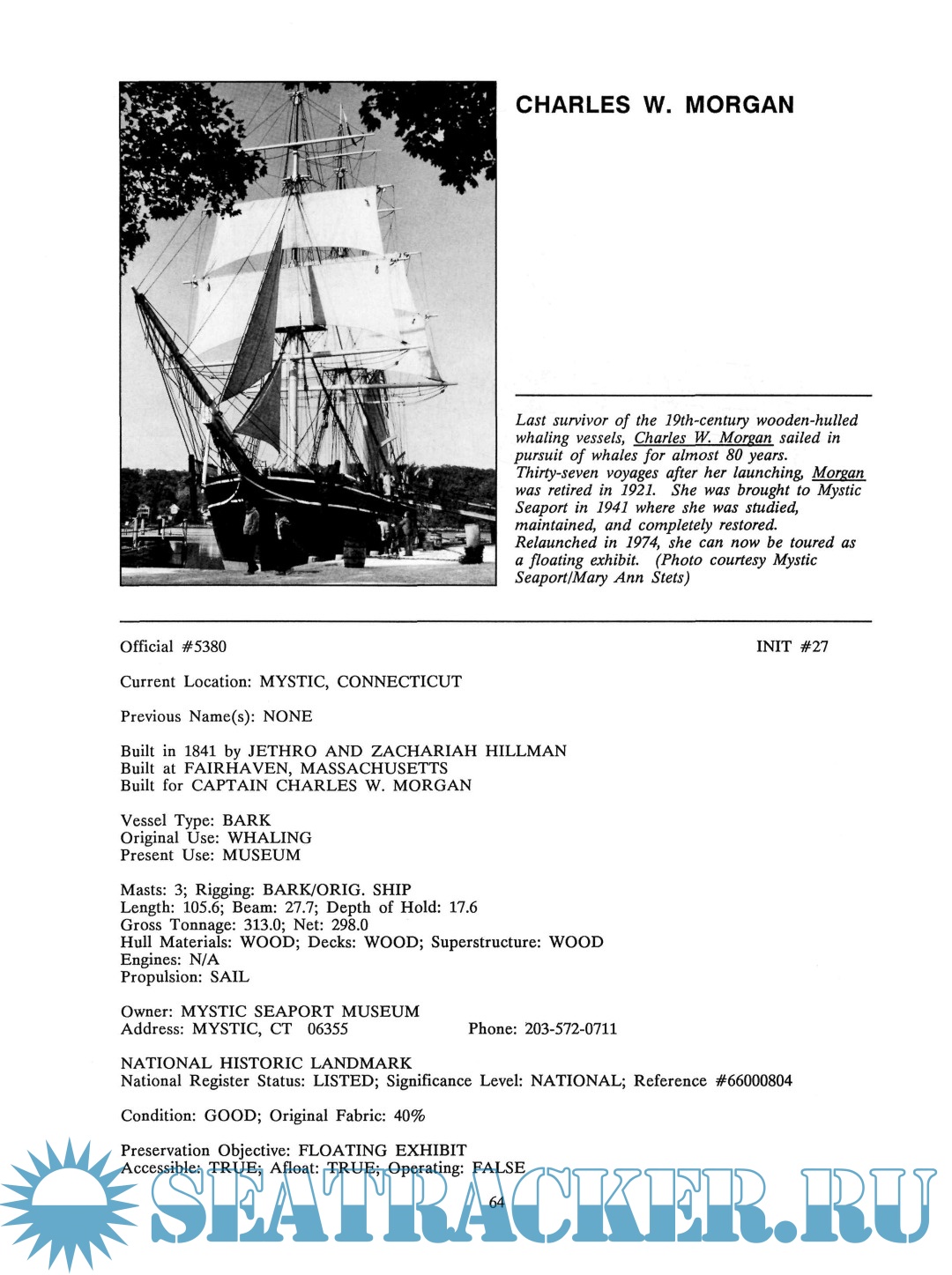 Description: The Inventory of Large Preserved Historic Vessels was prepared to identify the number, types, and condition of the large preserved historic vessels in the United States. It puts on paper a continually updated and revised computerized database that should be consulted as the most up-to-date source of information on historic ships as a group.