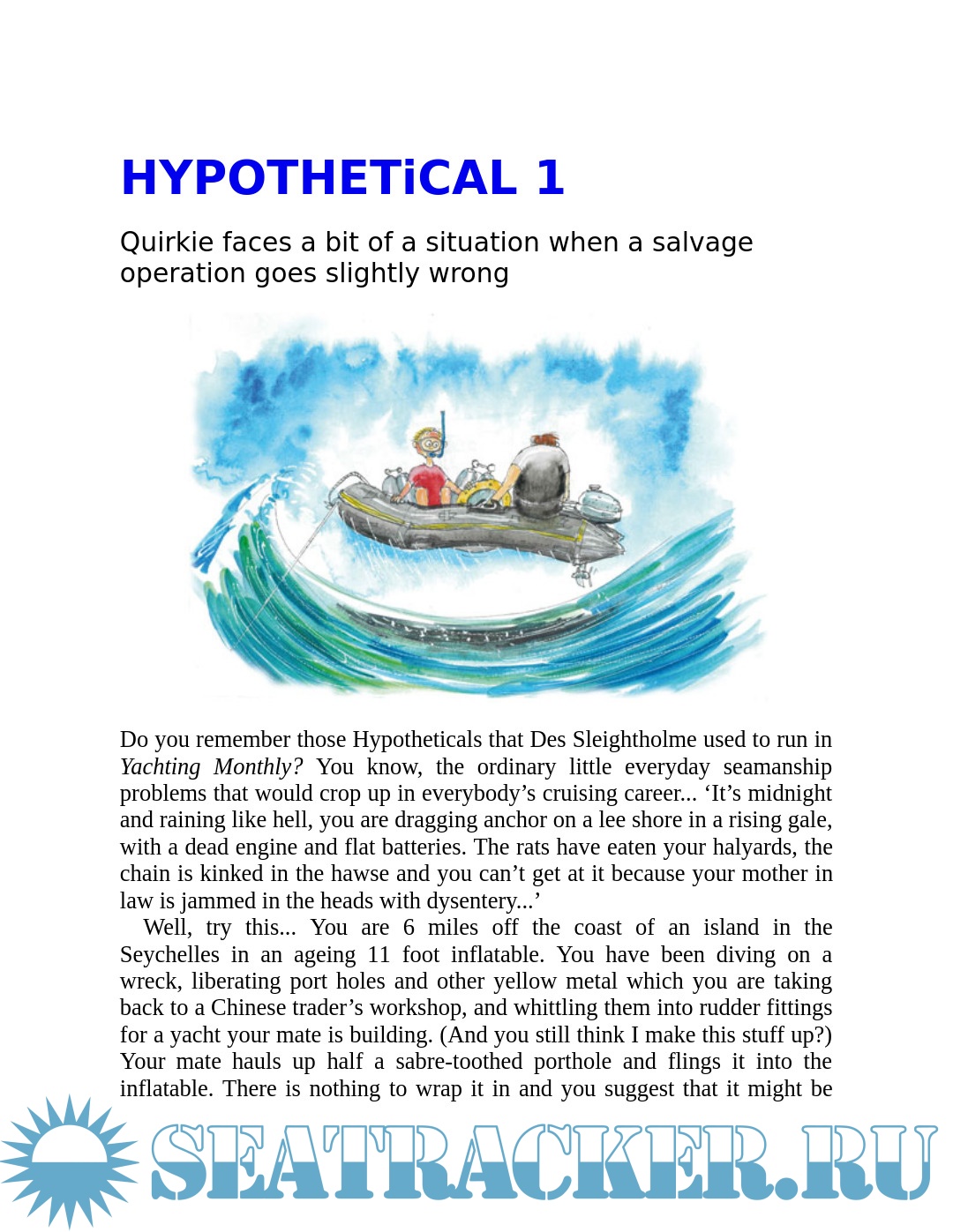 Most sailors will find something to relate to in the escapades and faux pas detailed here, and the stories will undoubtedly bring a wry smile to any boater's lips. John Quirk's terrifically witty cartoons help bring these anecdotes to life.
