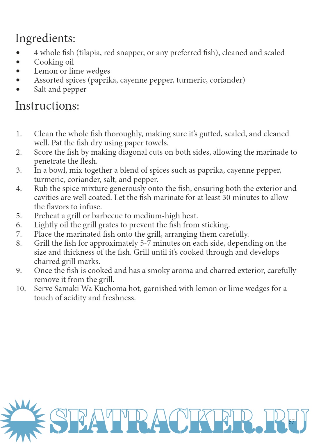 Description: Dive into the tantalizing flavors of Tanzania’s coastal bounty with our seafood cookbook.