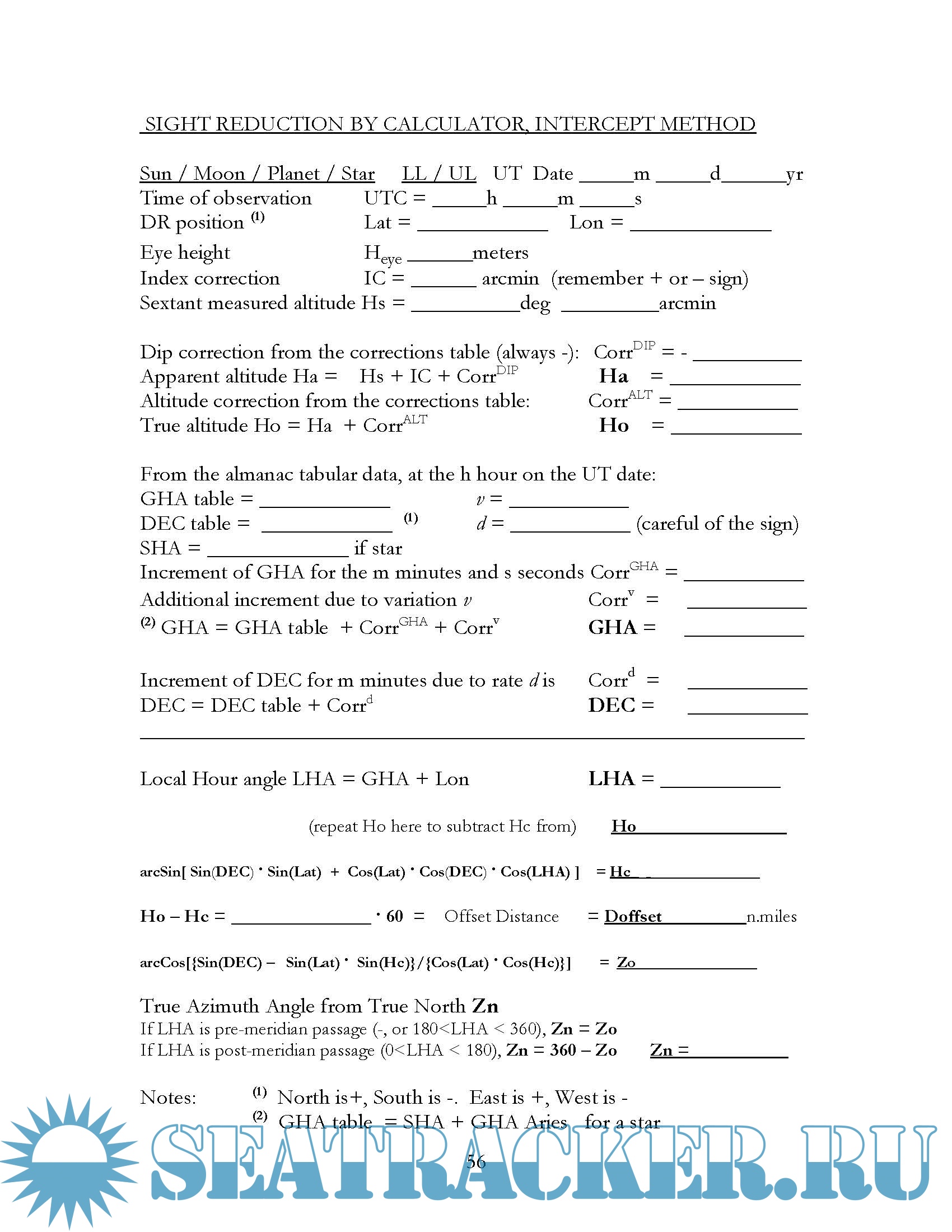Celestial Navigation; astronomical calculations exercises - Capt. Roberto Iori [2020, PDF]