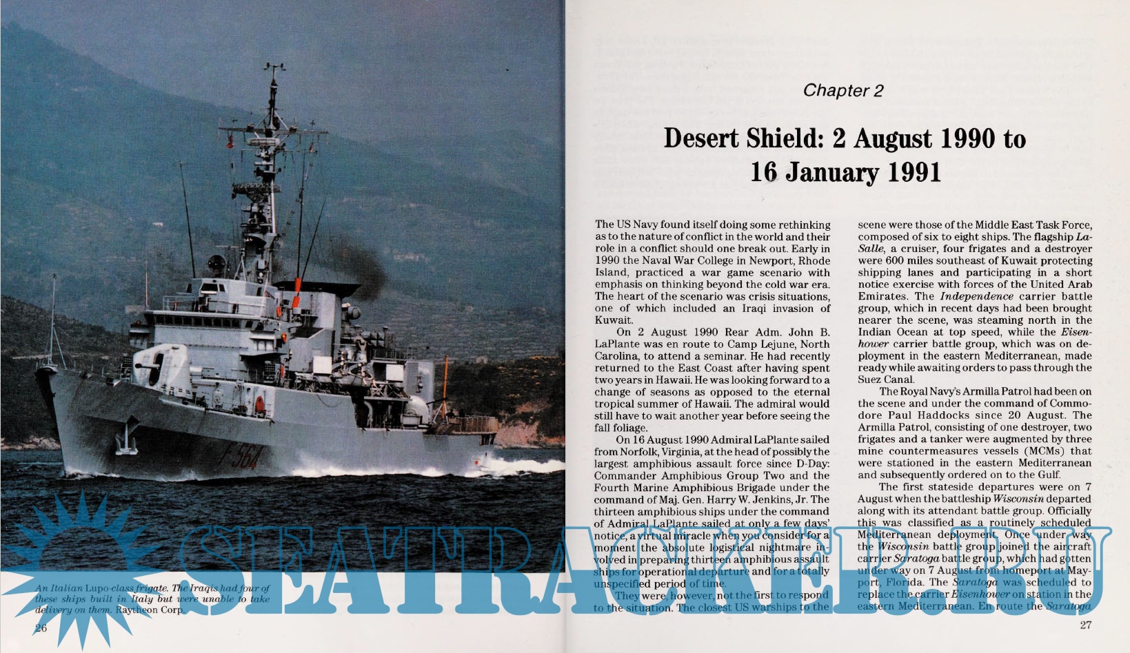 Description: Recounts the Allied naval support provided for the Persian Gulf War, and shares interviews with sailors, marines, and naval fliers