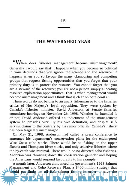 Description: The northern cod have been almost wiped out. Once the most plentiful fish on the Grand Banks off the coast of Newfoundland, the cod is now on the brink of extinction, and tens of thousands of people in Atlantic Canada have been left without work by a 1992 moratorium on fishing the stock. Today, the Pacific salmon stocks are in similar trouble “ victims of the same blind, stupid greed.