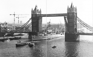 Description: There are many museums in London that detail Britain's experience during World War II. Some of the most well known museums fell under the jurisdiction of the Imperial War Museum with one of them being the warship HMS Belfast, which is located on the Thames River in London. A veteran of World War II in both the Atlantic and Pacific as well as in Korea during the 1950-1953 war, HMS Belfast escaped the scrap yard and became the third museum under the Imperial War Museum's jurisdiction in 1978.