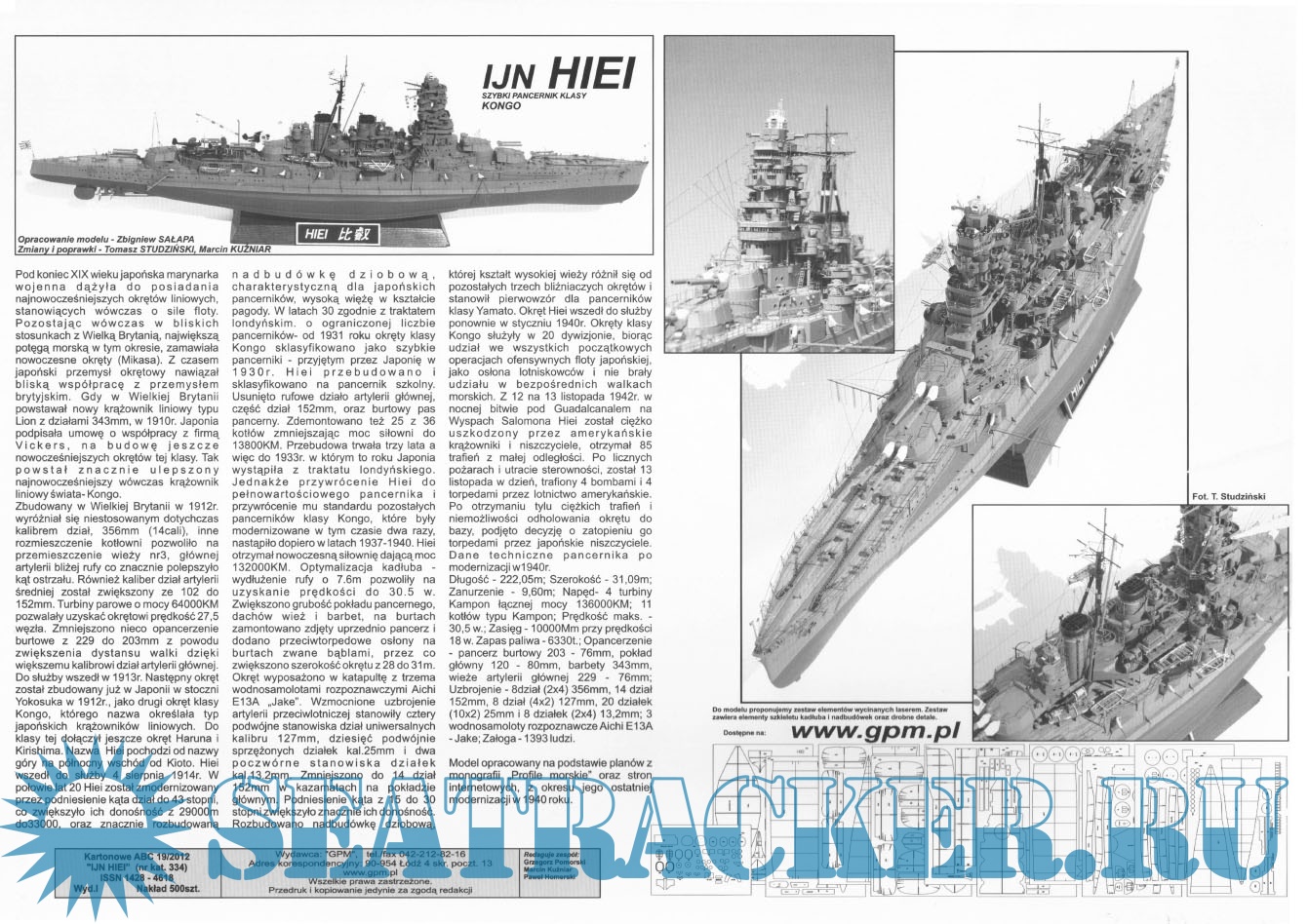 Описание: 36 листов цветных выкроек и инструкций для изготовления японского линкора IJN Hiei в масштабе 1:200