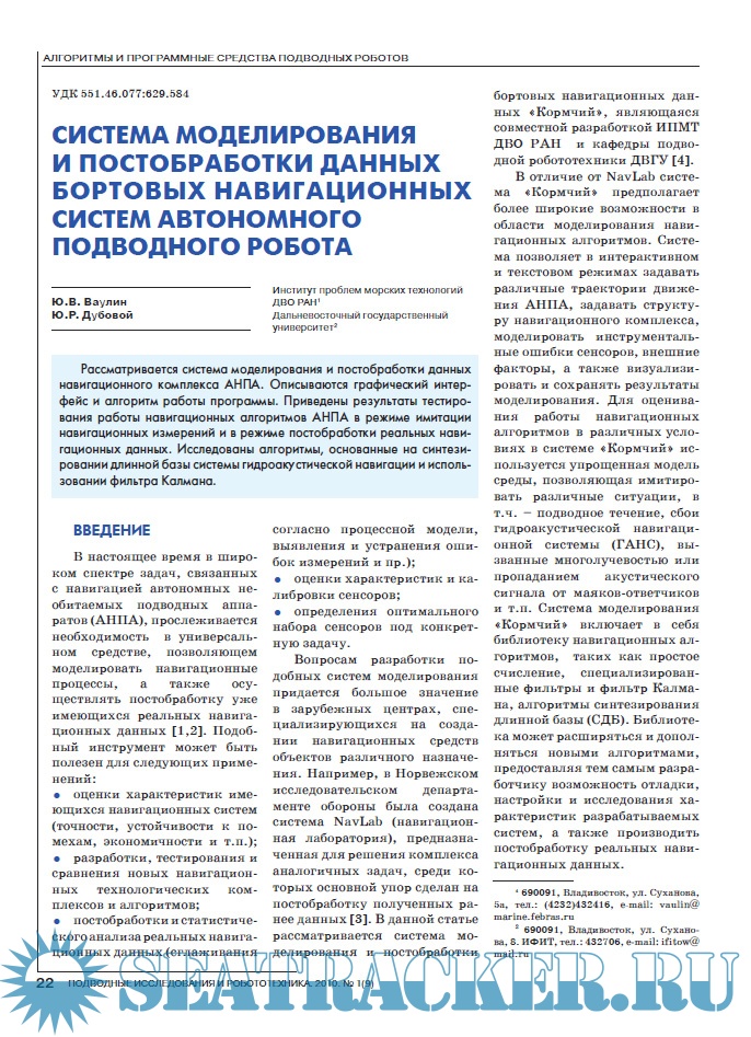 Описание: Научно-технический журнал «Подводные исследования и робототехника» посвящен проблемам исследования и освоения Мирового океана и относится к области знаний, лежащей на стыке наук:- теоретической и прикладной механики, навигации и управления движением, динамики управляемых систем и процессов,- робототехники, мехатроники, автоматизированного конструирования технических устройств, информатики и вычислительной техники,- теоретической и прикладной океанографии, физики океана, гидроакустики, морской геологии, экологии морских акваторий.Цель журнала – систематизировать и объективно отражать все наиболее значимые научно-технические и практические достижения и результаты исследований по освоению подводного пространства и морского дна, способствовать развитию новых идей, средств и методов подводных исследований и робототехники, консолидировать усилия научных и деловых кругов, потенциальных потребителей новейших достижений в сфере подводных технологий.Журнал «Подводные исследования и робототехника» публикует научно-технические статьи, проблемные, обзорные, дискуссионные материалы по всем направлениям, относящимся к методам и техническим средствам исследования и освоения океана, включая подводные аппараты и роботы, акустические, гидрологические, геофизические средства и методы исследования физических полей океана.Авторами публикаций журнала являются авторитетные ученые, ведущие специалисты и молодые исследователи из научных организаций и вузов Москвы и Подмосковья, Санкт-Петербурга, Зарубежья, Дальнего Востока, Урала, Сибири, и других регионов России. Для научного рецензирования и редактирования публикуемых статей привлекаются авторитетные специалисты в соответствующих областях знаний.Читательская аудитория - широкий круг ученых и специалистов, работающих в области исследования морских глубин, деловые круги и потенциальные потребители научно-технических разработок и инновационных проектов, молодые ученые, аспиранты и студенты, специализирующаяся в указанной области.