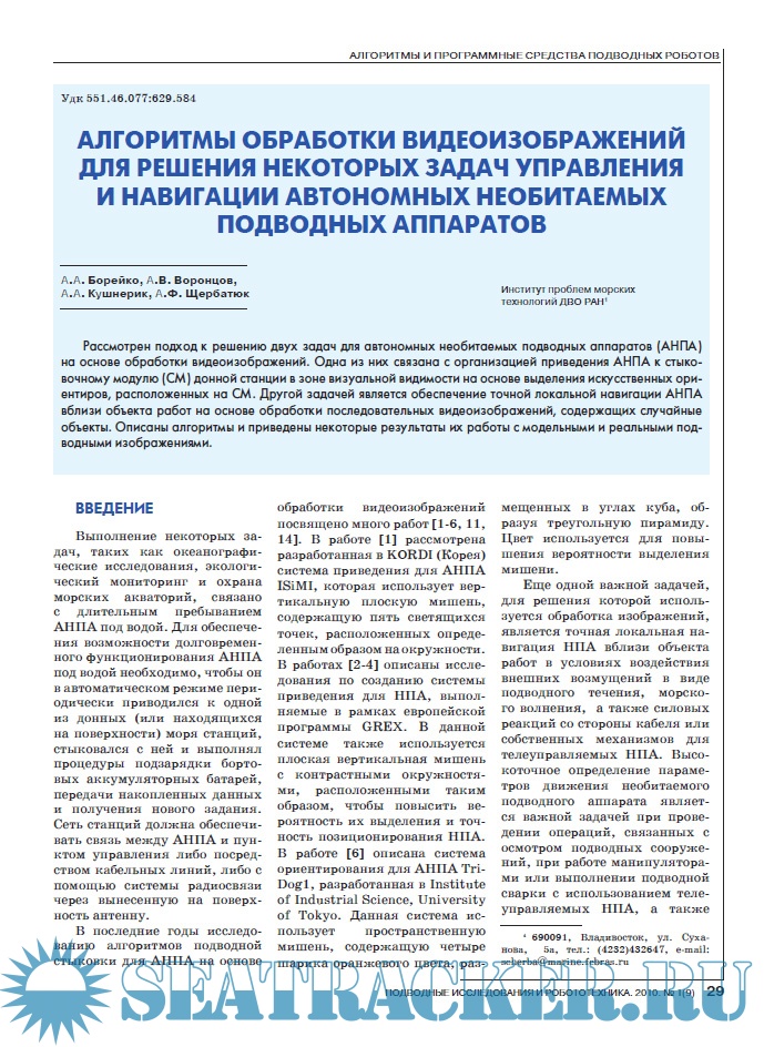 Подводные исследования и робототехника № 29 - группа авторов [2019, PDF]