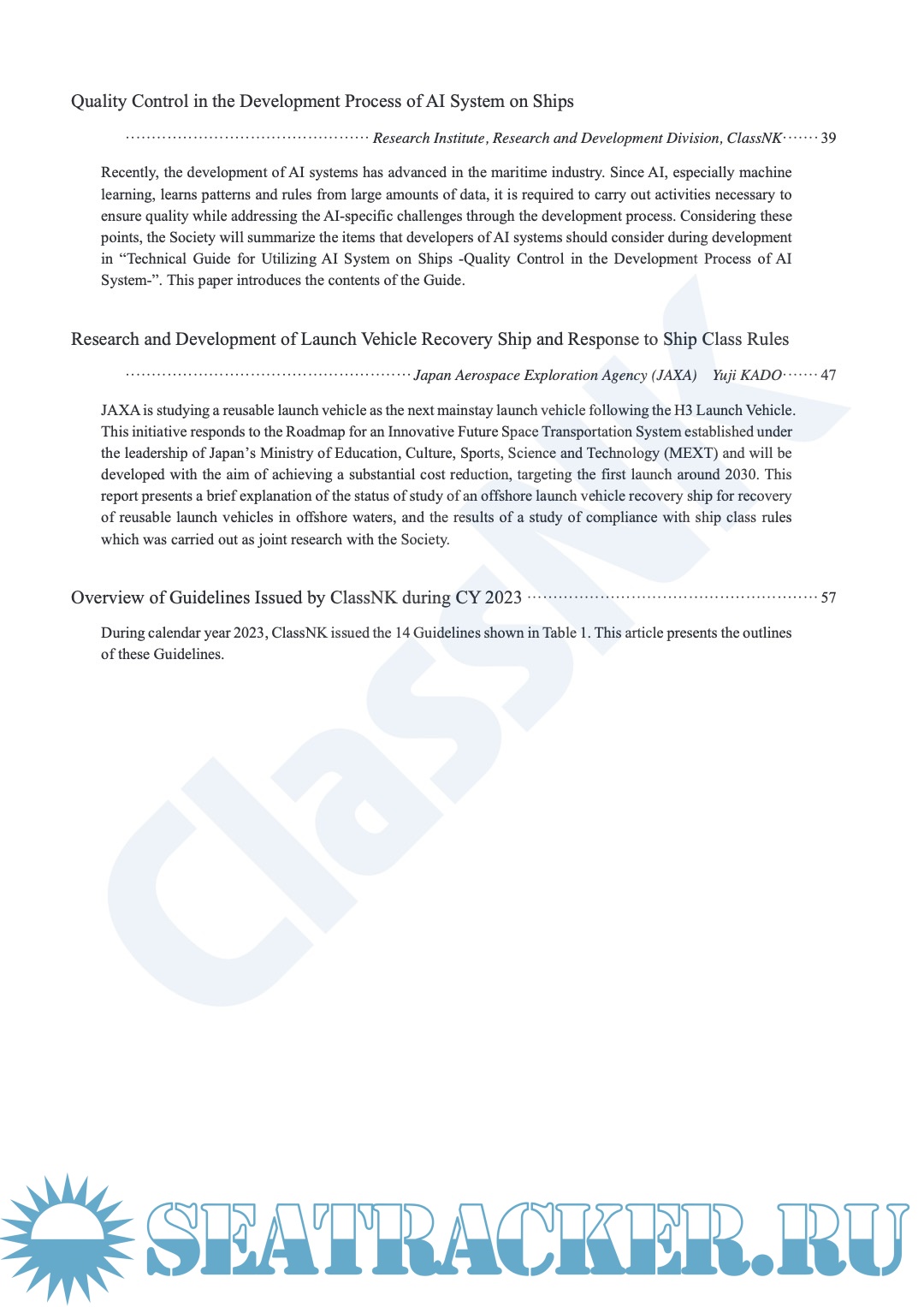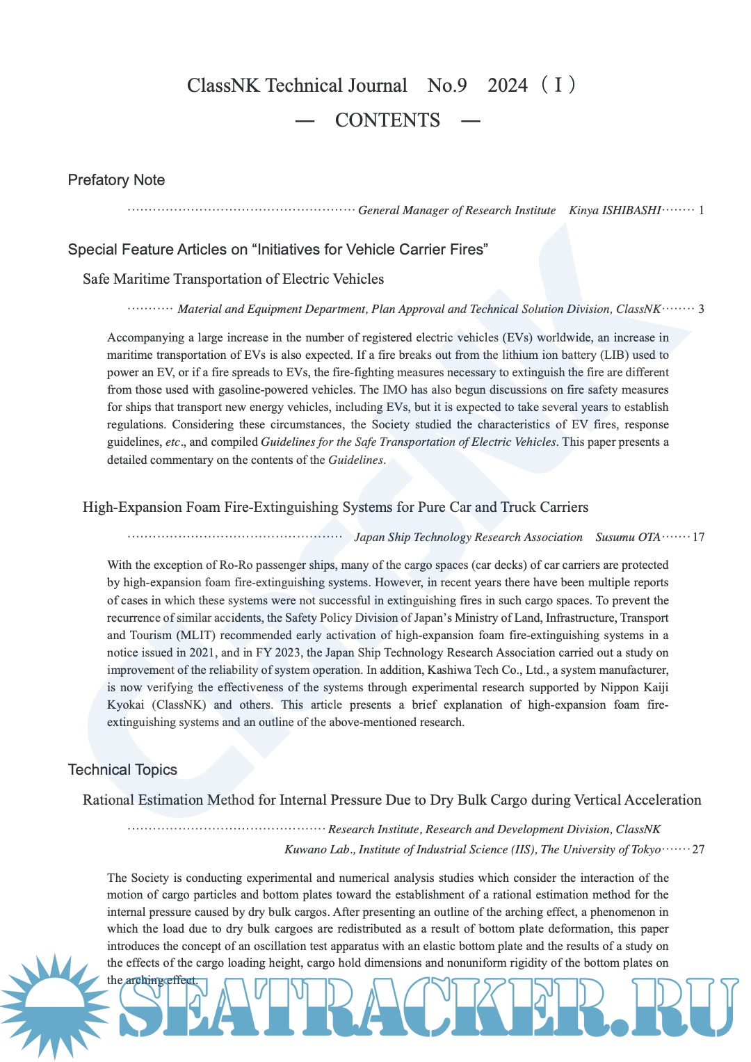 Year: 2024 Language: English Author: ClassNK Genre: Periodical (magazine) Publisher: ClassNK Edition: 1 Format: PDF Quality: eBook Pages count: 82 Description: Iniciative for Vehicles Carrier Fires which introduces the guidelines for the safe transportation of electric vehicles