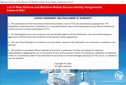 Description: The List of Ship Stations and Maritime Mobile Service Identity Assignments (List V) is a service publication prepared and issued, once a year, by the International Telecommunication Union (ITU), in accordance with provision no. 20.8 of the Radio Regulations (RR). As stipulated in Appendix 16 to the RR, this List shall be provided to all ship stations for which a Global Maritime Distress and Safety System (GMDSS) installation is required by international agreement.