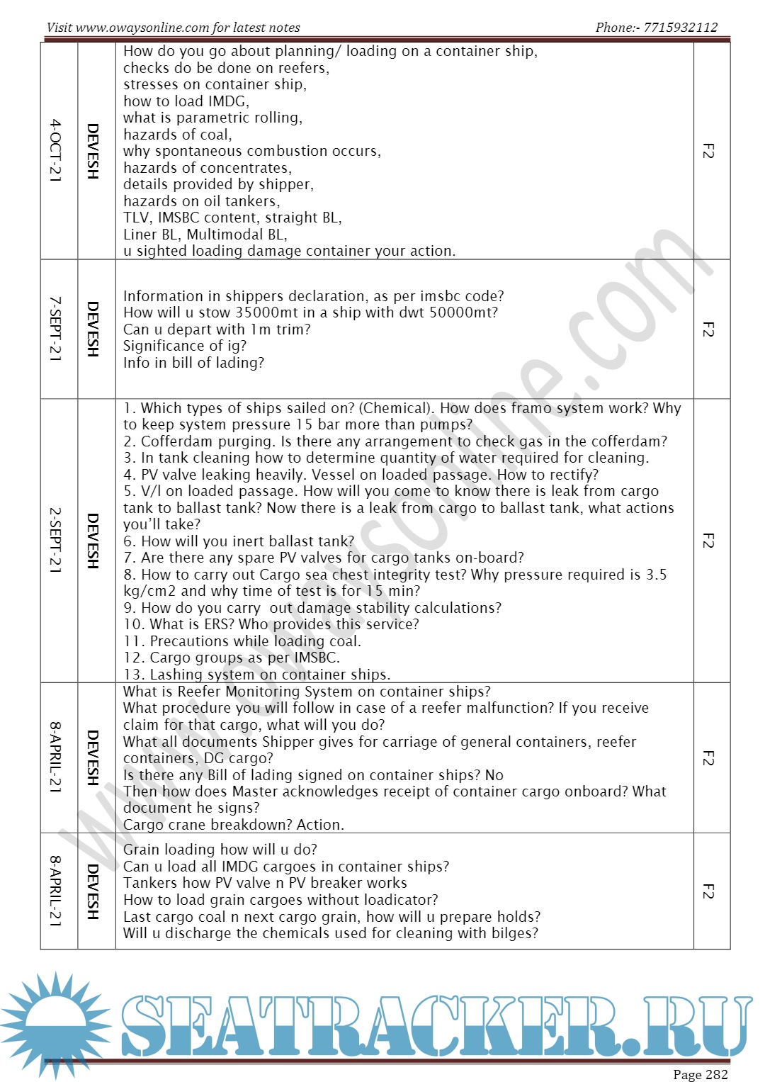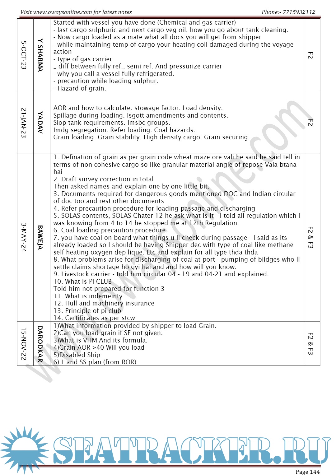 Description: Orals Question Bank for Chief Mate F.G. Mercantile Marine Department (MMD), India Examinations. Segregated as per Functions / Surveyors/ Dates.