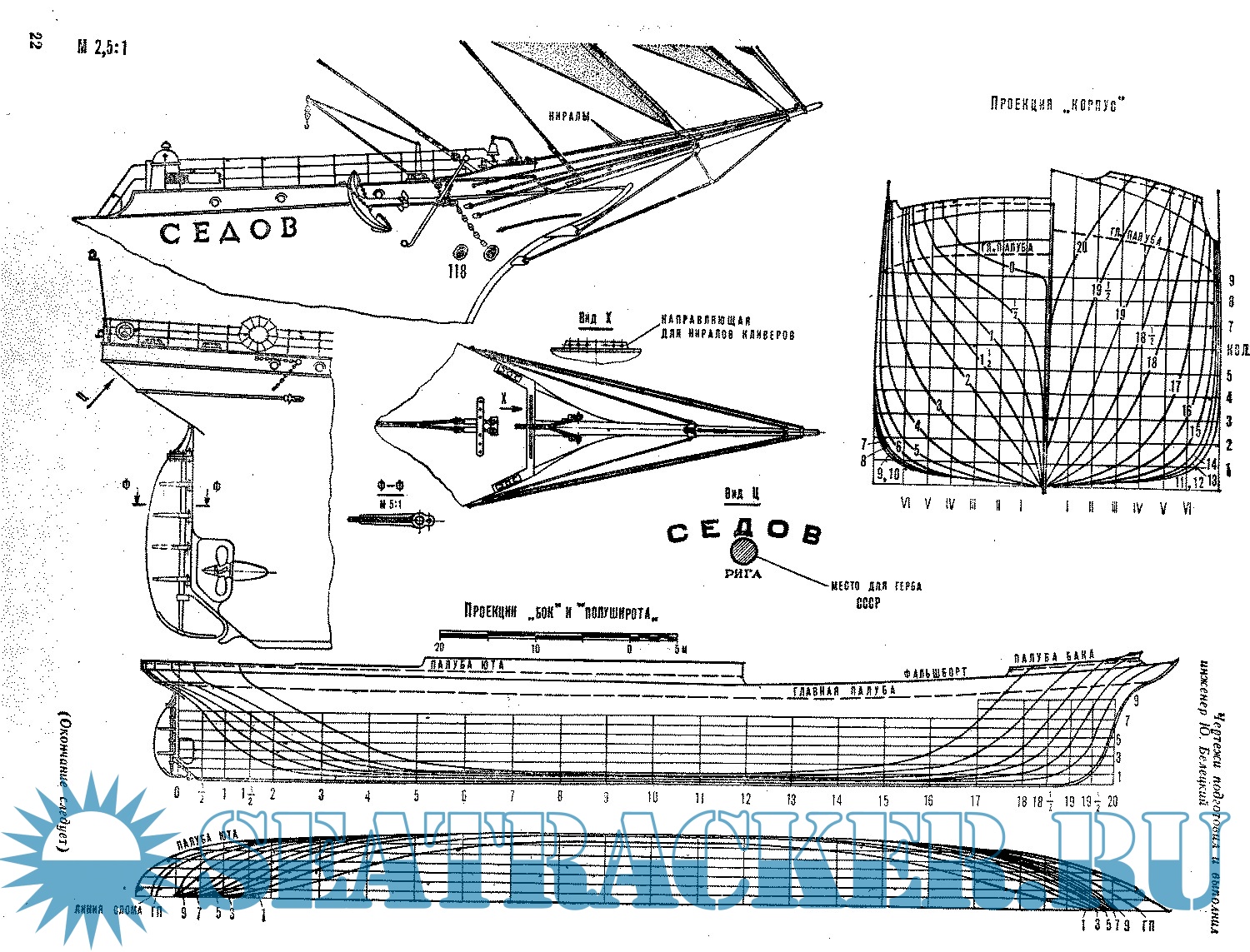 7 листов чертежей барка "Седов" (Россия)