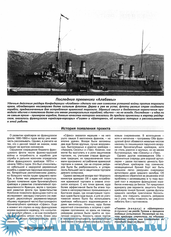Описание: Данный номер «Морской кампании» в какой-то мере является развитием темы, начатой в прошлых выпусках. Мы рады представить вашему вниманию монографию о французских крейсерах «Шаторено» и «Гишен». Появившиеся на рубеже XIX-XX веков, они назывались и «бронепалубными крейсерами», и «быстроходными крейсерами», и даже «крейсерами-корсарами».