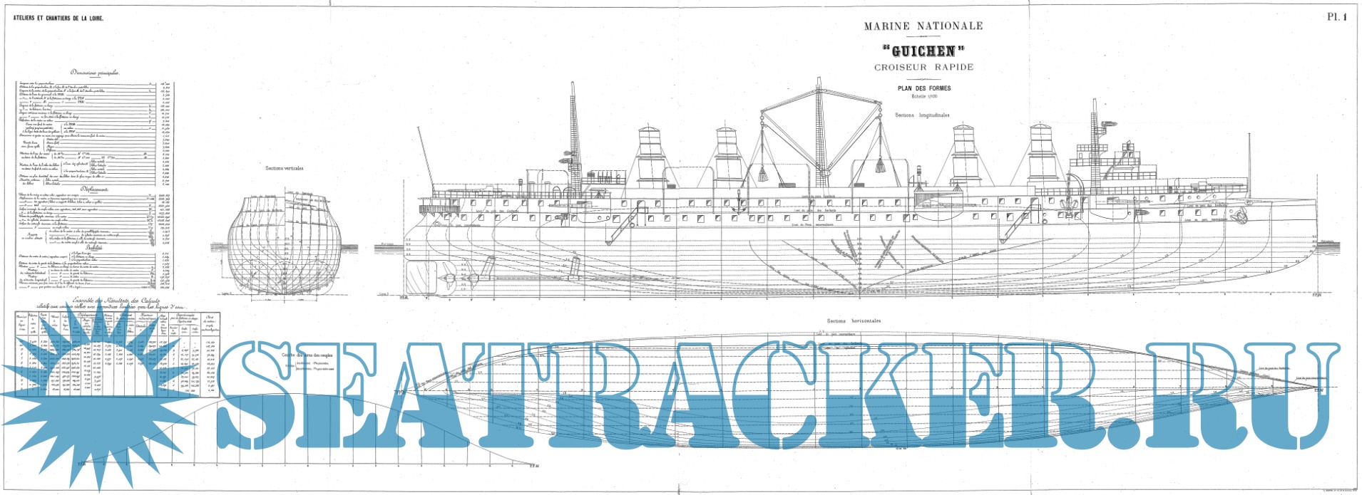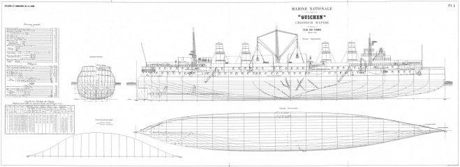 Архивные чертежи французского крейсера GUICHEN 1897 год