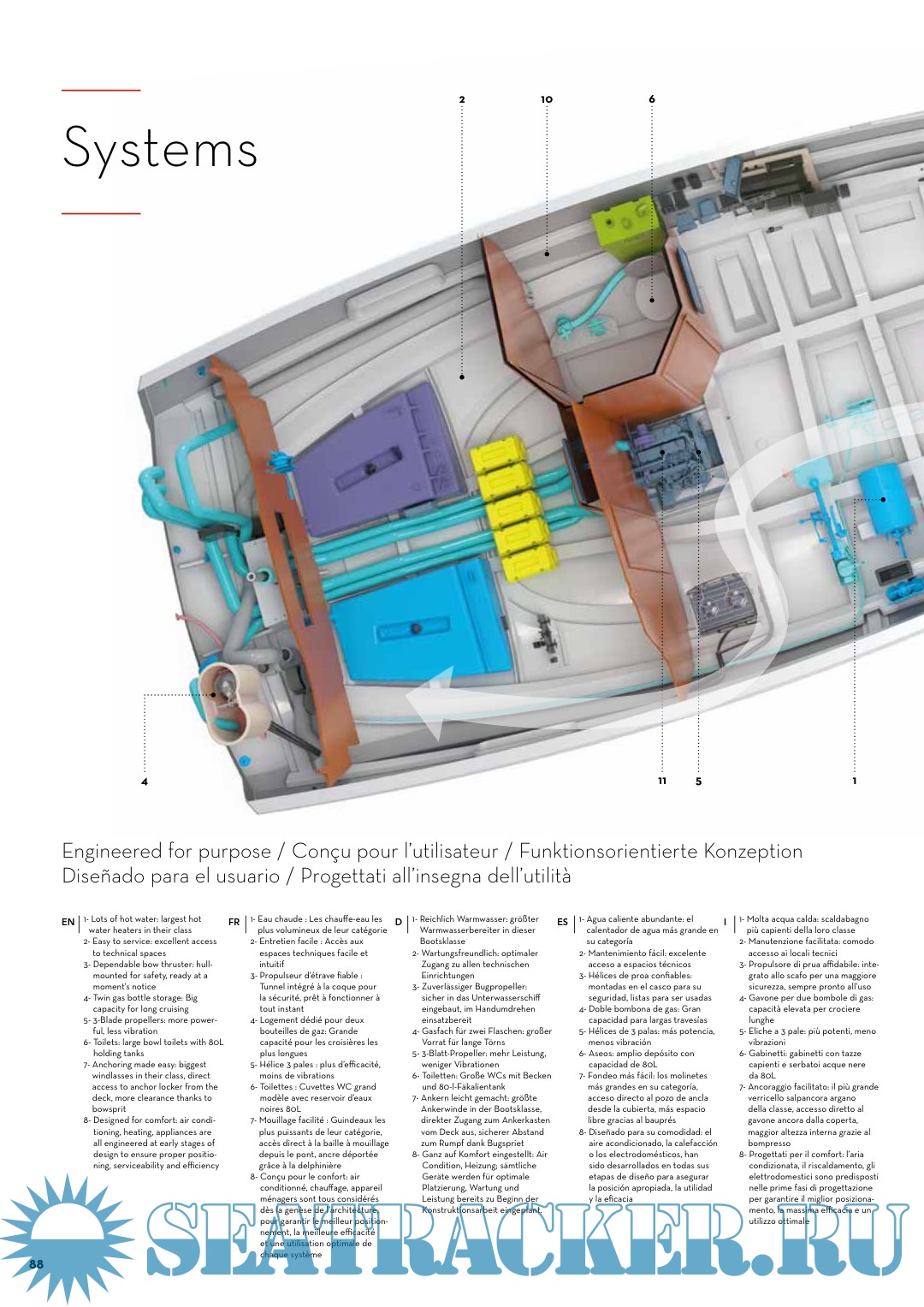 Onboard the comfort is served by a timeless design, performance is achieved without effort, and above all, safety at sea is guaranteed. Ideal for your family cruises.