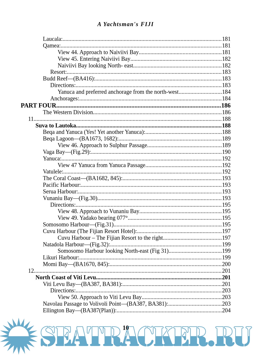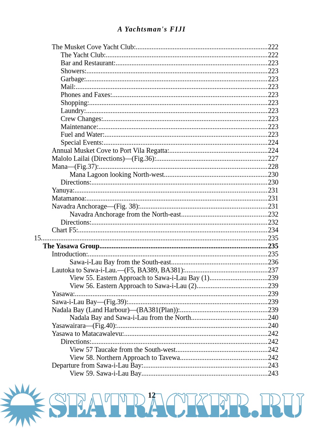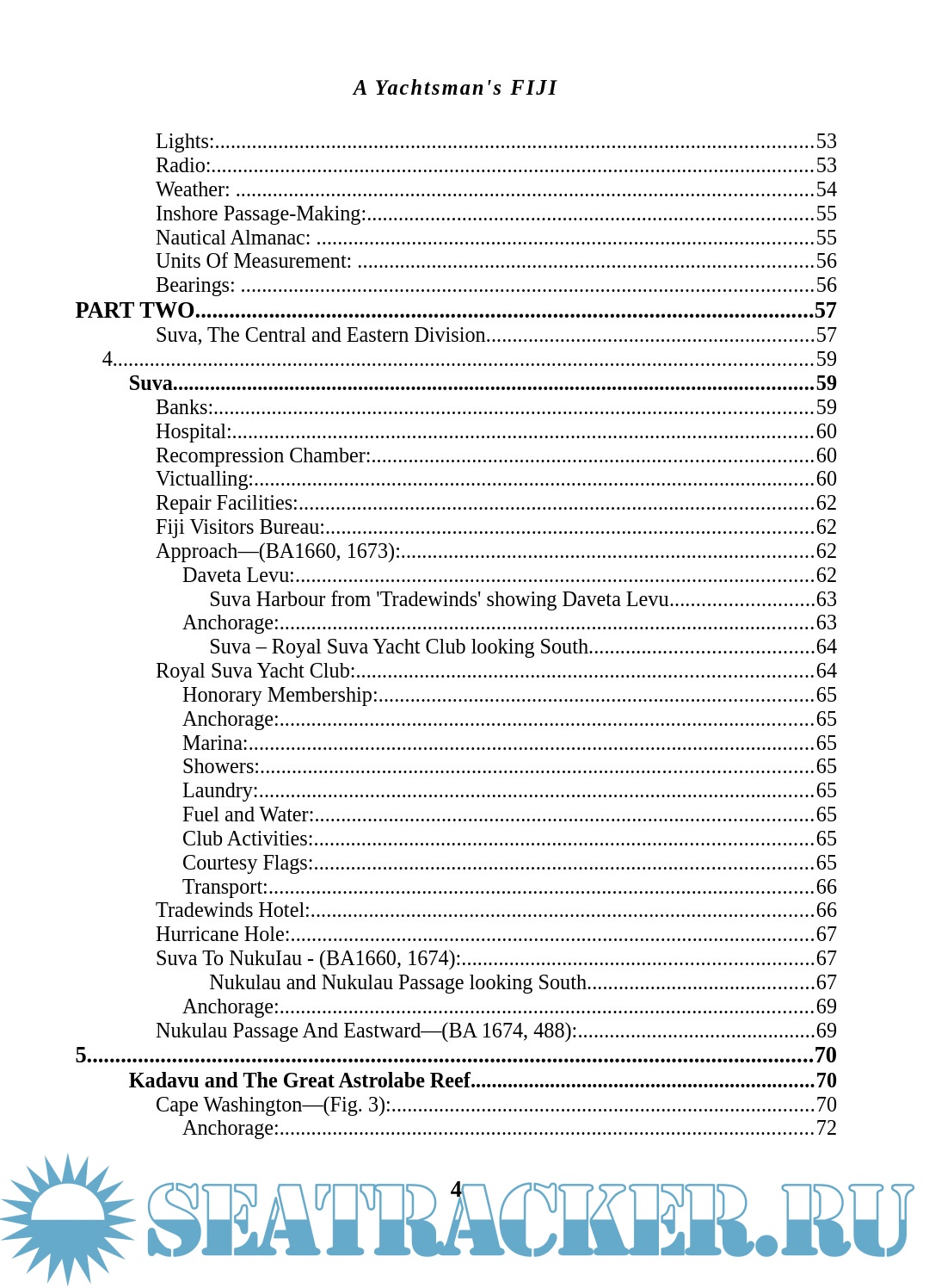 Year: 1987 Language: English Author: Calder M. Genre: Guide Publisher: The Cruising Classroom ISBN: 0 646 14682 3 Format: PDF Quality: eBook Pages count: 265 Description: In July of 1984, I arrived in Fiji from Vanuatu in my yacht 'Eureka', and after clearing customs at Lautoka, set off to cruise in the Yasawas. Charts were non-existent, but I was able to obtain some second-hand copies of 'Pickmere's' from a fellow yachtie who was moving on to Vanuatu. Until that time I had no knowledge of their existence and had already found that, except for the Pacific Islands Pilot Vol.II, published by The Hydrographer of the Navy, there was no information of any sort on the waters of Fiji, particularly those areas of interest to a yachtsman.