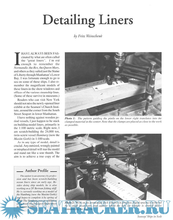 Year: 1994 Language: English Author: Scottie Dayton (Editor) Genre: Periodical publication Edition: 1994-3 Format: PDF Quality: eBook Pages count: 76 Description: Seaway is the home port for Seaways Ships in Scale magazine, the leading workshop and research magazine for the ship modeler. In the magazine we explore all levels of modeling experience, all types of ships, all kinds of models, all historical eras and all construction materials