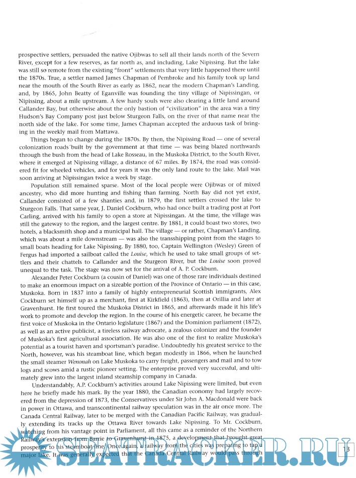 Year: 1996 Language: English Author: Richard Tatley Genre: Historical Publisher: Stoddart Toronto Format: PDF Quality: Scanned pages Pages count: 248 Description: Steamboats once traveled all of Ontario's navigable waterways -- the Great Lakes, the Ottawa River, the Rideau, the Kawarthas, the Muskoka Lakes -- but nowhere did they find a greater variety of employment than in the North. Here, steamboats served the lumber trade, brought settlers to their new lands, transported produce to markets, and helped to make possible the railways, the mining industry, paper mills, and tourism. They were lifelines to isolated communities and remote island villages. This fascinating account of the heyday of steamboating in the North is a timely sequel to Richard Tatley's previous books, as divers probe the depths of northern waters for wrecks and our marine heritage is once again an important topic in the popular media and at museums across the country.