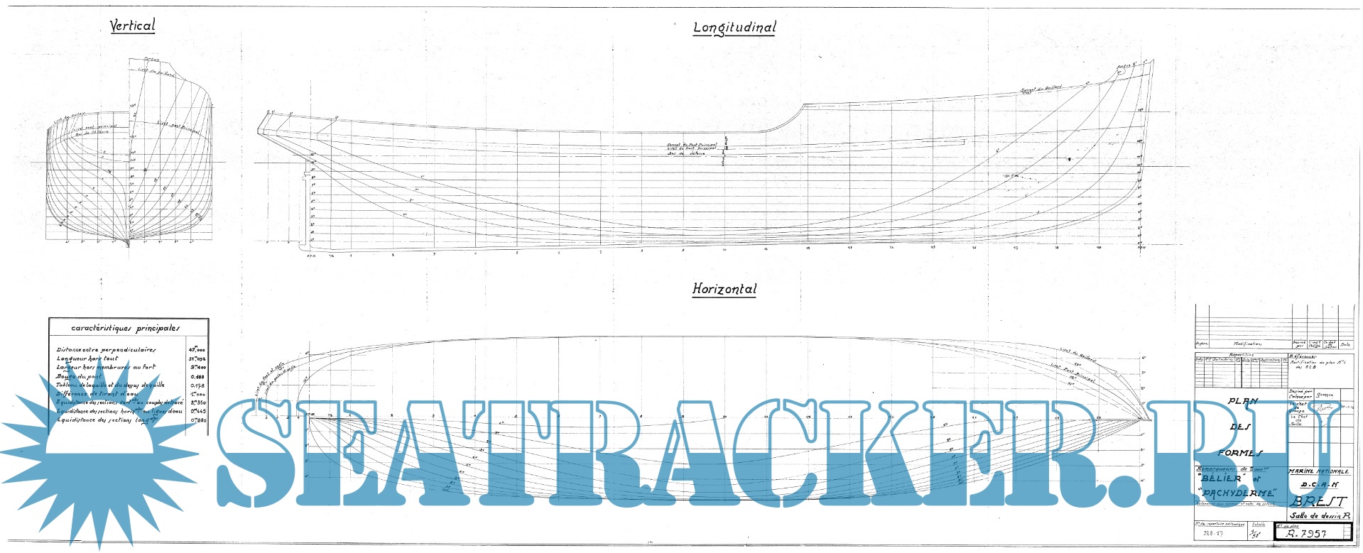 Архивные чертежи французского буксира PACHYDERME 1951 год - нет данных [1951, TIFF]