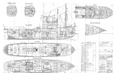 Описание: 44 листа архивных чертежей французского буксира BELIER 1952 год