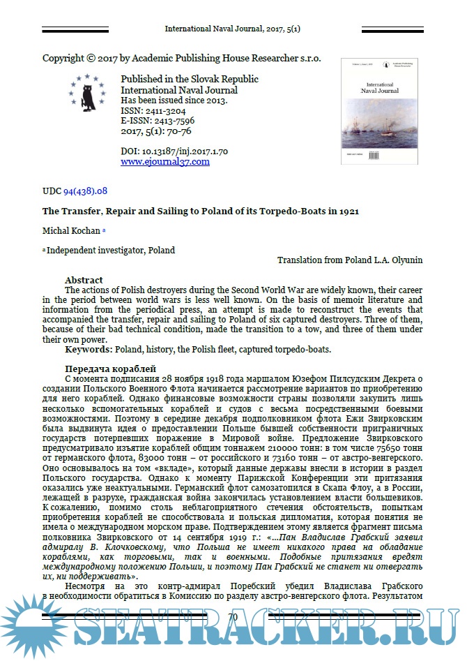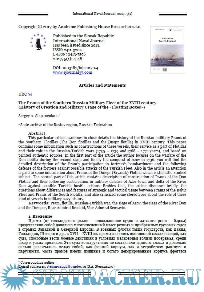 Описание: Миссия журнала заключается в создании международной дискуссионной платформы в области военно-морской истории. В отличие от большинства авторитетных военно-морских исторических журналов, мы позиционируем себя в первую очередь как один из немногих научных журналов в этой области, что предполагает необходимые требования к структурированию работы, ее метаданным, библиографическому описанию, а также процедуре рецензирования.Журнал публикует материалы, статьи и краткие сообщения о результатах исследований в области военно-морской истории, на английском и русском языках. Выходные данные статьи на английском языке.