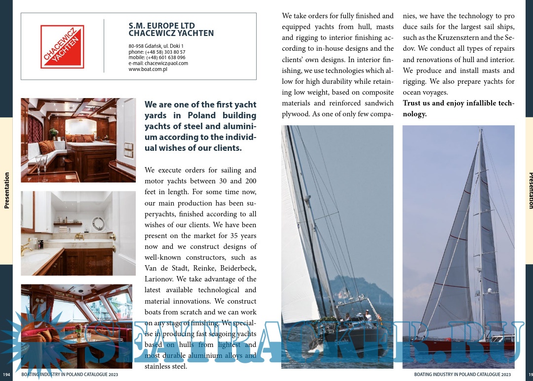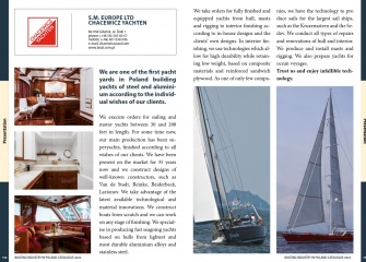 Description: Polish marine industry is more than just yacht yards and includes a highly developed network of producers of components and parts, as well as suppliers of production and maintenance materials for boats and yachts. The superb quality of the services allowed many of our suppliers like Kotniz, Sail Service, Pacyfic and many others to establish lasting cooperation with leading producers of yachts all over the world.