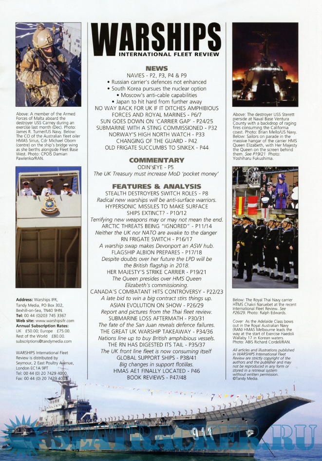 Description: Warships IFR puts the spotlight on the latest developments in the world’s navies. It covers current defence issues and has comments by leading analysts. The magazine regularly includes features on the Royal Navy and the US Navy in addition to incorporating news and features on all other navies across the globe. Warships IFR frequently carries in-depth articles on naval heritage.WARSHIPS International Fleet Review is published 12 times a year by Tandy Media Ltd who also publish Shipping Today & Yesterday (which provides news and features from the world of merchant shipping).
