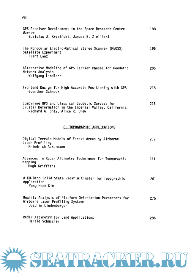 Year: 1989 Language: English Author: Klaus Linkwitz, Ulrich Hangleiter Format: PDF Quality: eBook Pages count: 636 Description: These proceedings are a complete collection of the contributions presented at the International Workshop High Precision Navigation in May 1988 in Stuttgart and at Altensteig. The workshop was organized by the Sonderforschungsbereich 228 (SFB 228) Hochgenaue Navigation - Integration navigatorischer und geodatischer Methoden (Special Collaborative Programme "High Precision Navigation - Integration of Navigational and Geodetic Methods"), and more than 100 scientists participated