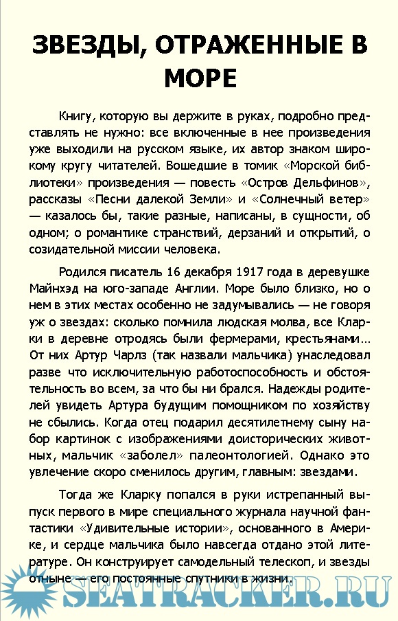 Год выпуска: 1978 Язык: Русский Автор: Кларк А. Жанр: Художественная литература Издательство: Маяк Издание: Морская библиотека Формат: FB2 Качество: Изначально компьютерное (eBook) Количество страниц: 279 Описание: В книгу известного английского писателя-фантаста вошли повесть и два рассказа. В повести «Остров Дельфинов» изображается коллектив ученых, который под руководством советского профессора изучает жизнь дельфинов, стремясь приручить этих морских животных, сделать из них разведчиков океанских глубин. Действие развертывается на коралловом острове недалеко от Австралии.