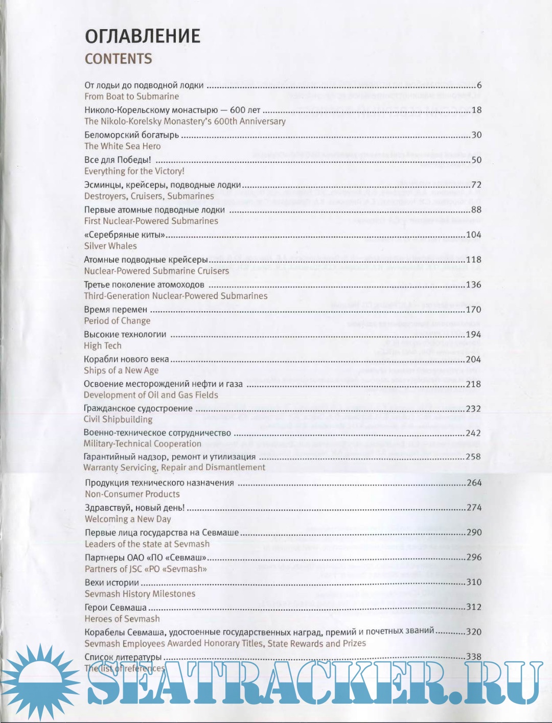 This is a book and photo album «Russian North Outpost», an illustrated history of the largest Russian shipyard Sevmash. An exceptionally favourable location of the yard predetermined its destiny. Just as four and a half centuries ago the Nikolo-Korelsky Monastery, being currently the shipyard's temple, became the first sea port of Russia, so during the Great Patriotic war the yard still under construction became the main White sea port receiving the lend-lease cargoes, and after the war it turned into a cradle of Russian nuclear fleet. Looking through the album one can get acquainted with the milestones of a long history of shipbuilding in the Russian North, starting from first frigates of Peter the Great to modern missile carrying submarines. All this is the result of heroic labour of Pomors — proud and independent people who have subdued vast expanses of the Russian North. Having turned over the last page one cannot but arrive at an idea that rich spiritual heritage combined with high technologies is a guarantee of Sevmash's future success.