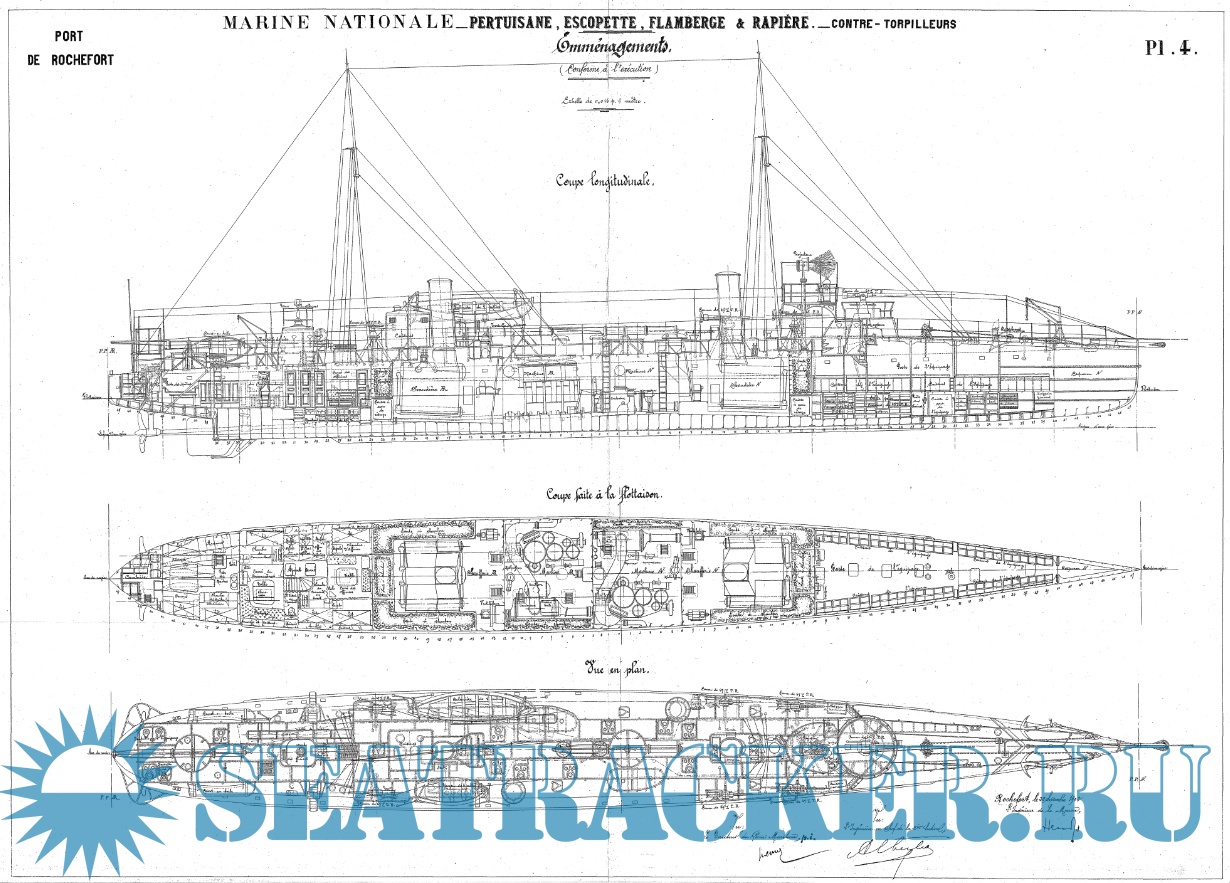Архивные чертежи французского миноносца PERTUISANE 1900 год - нет данных [1900, TIFF]
