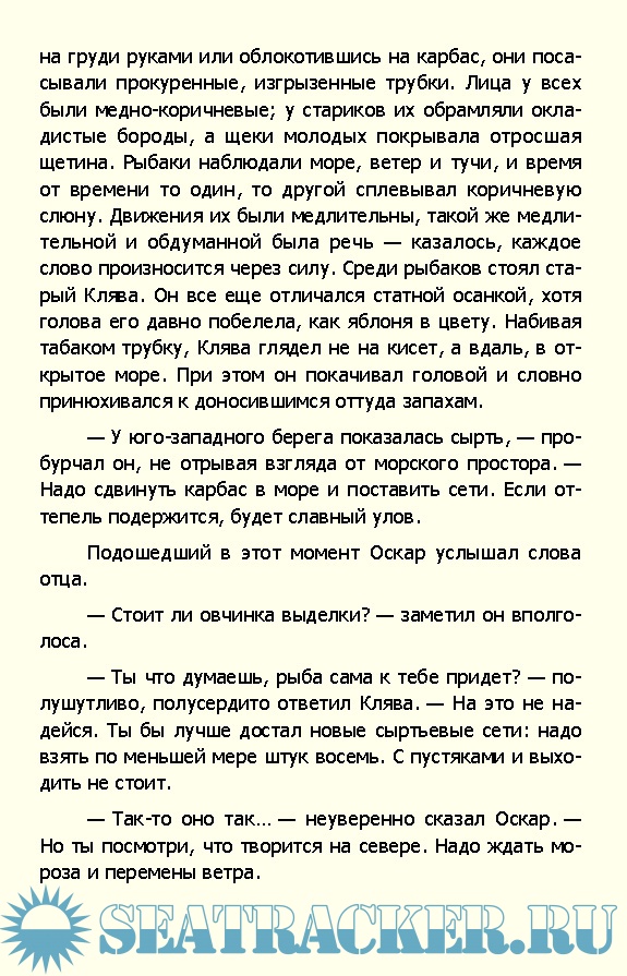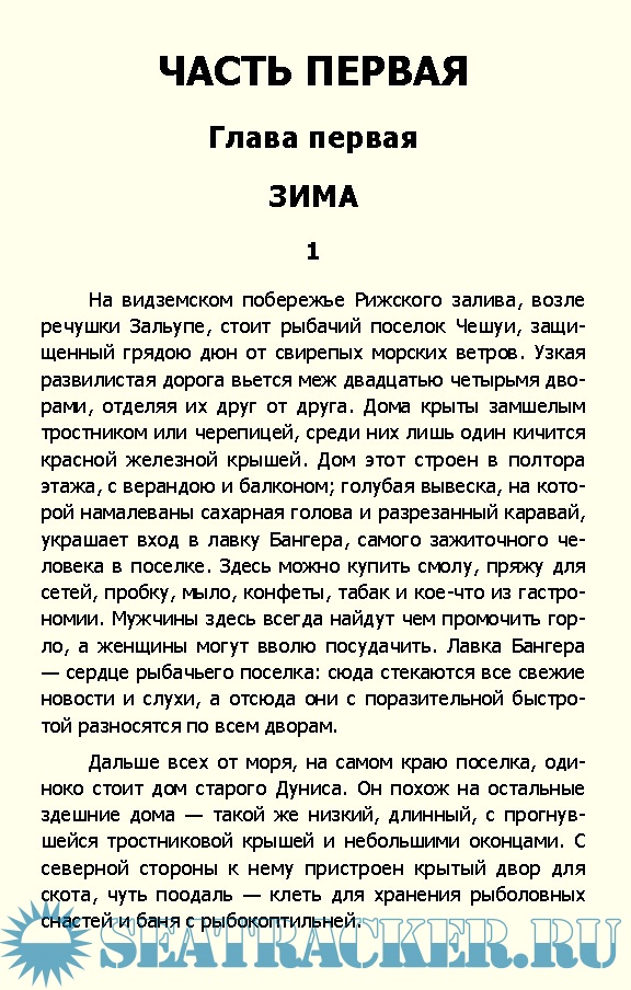 В романе достоверно показана жизнь в рыбачьем селе: события, происходящие в нем, судьбы рыбаков в досоветской Латвии.