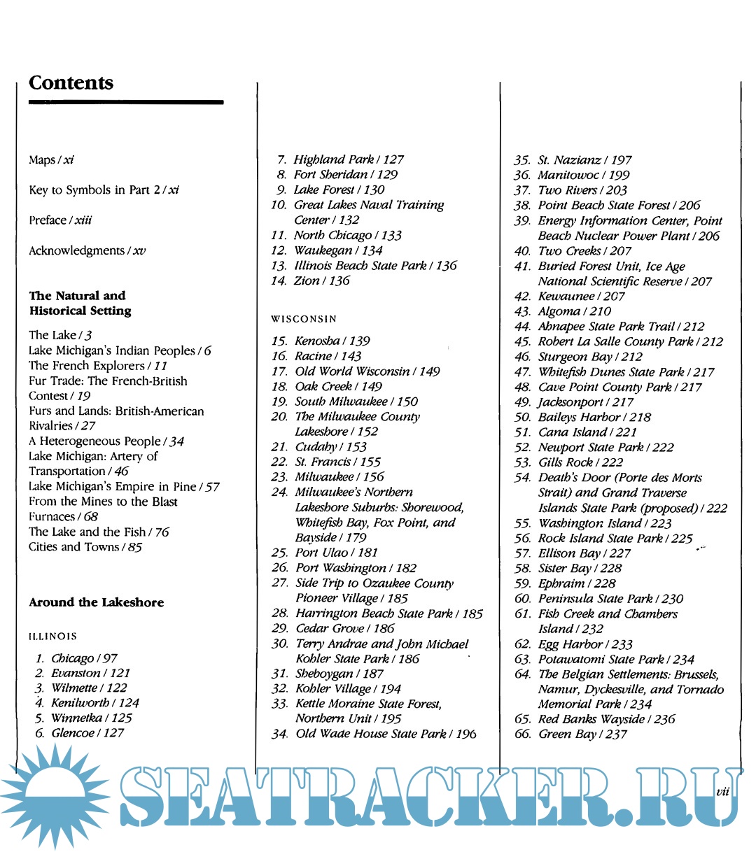 Year: 1985 Language: English Author: Bogue M.B. Genre: Guide Publisher: University of Wisconsin Press Format: PDF Quality: eBook Pages count: 251 Description: This superbly organized guide to the 1,600-mile shoreline of Lake Michigan describes 182 historical sites and points of interest. Generously illustrated, it includes historical sketches, keys to recreation, and a large fold-out planner map.