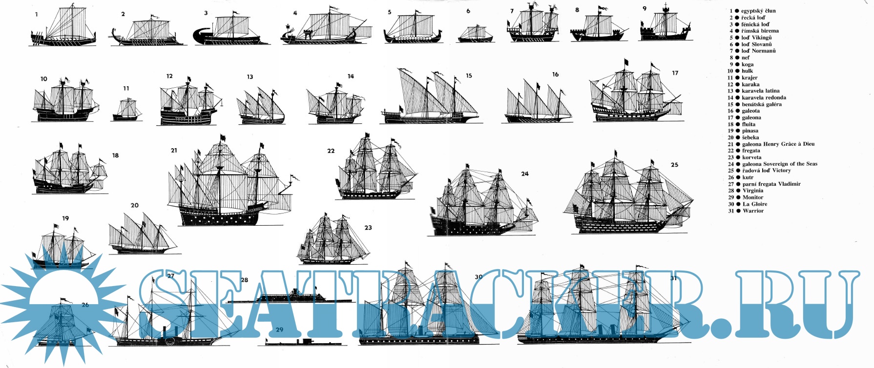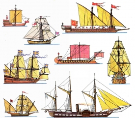 Válečné lodě 1. Lodě veslové a plachetní do roku 1860