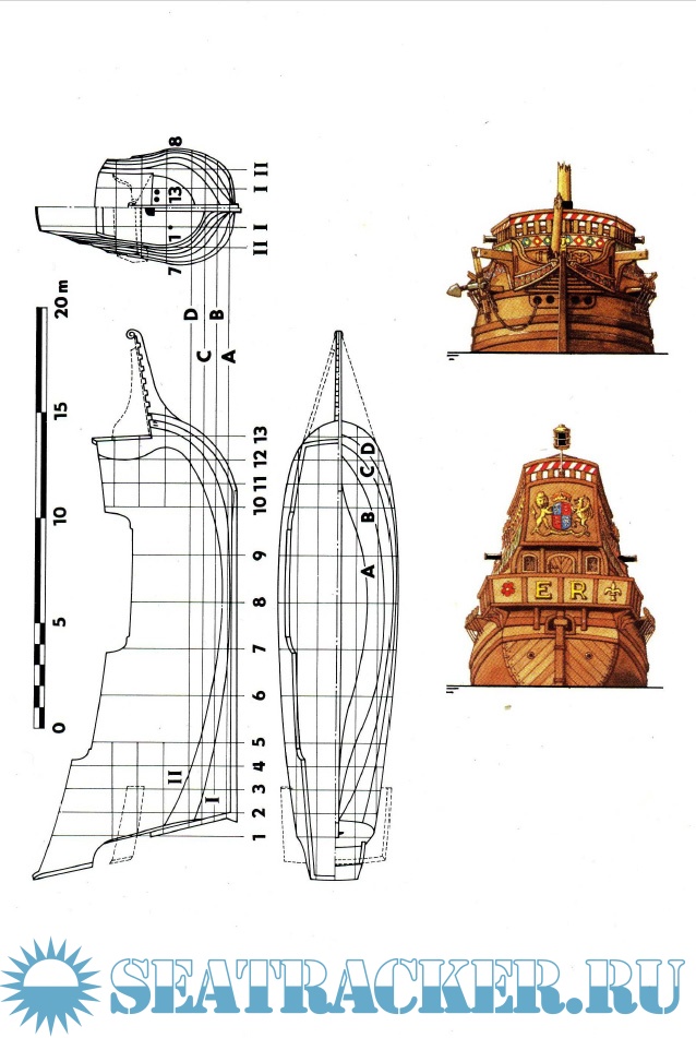 Středověké lodě-lodě, coggy, caracchi a karavely. Plachetnice s plnou plachetnicí. Zobrazeny jsou návrhy různých lodí-asi 40 schémat celkového vzhledu, řezy, výzbroj, schéma rangoutu a takeláže plachetnice. mezi nejvýznamnější bitvy patří Salamin, Lepanto, Abukir, Trafalgar, Sinop. Kniha končí vznikem francouzské fregaty Gloir, na které byly použity dvě inovace, které znamenaly začátek nové éry - parní stroj a rezervace na palubě železnými pásy. začalo století páry a brnění.