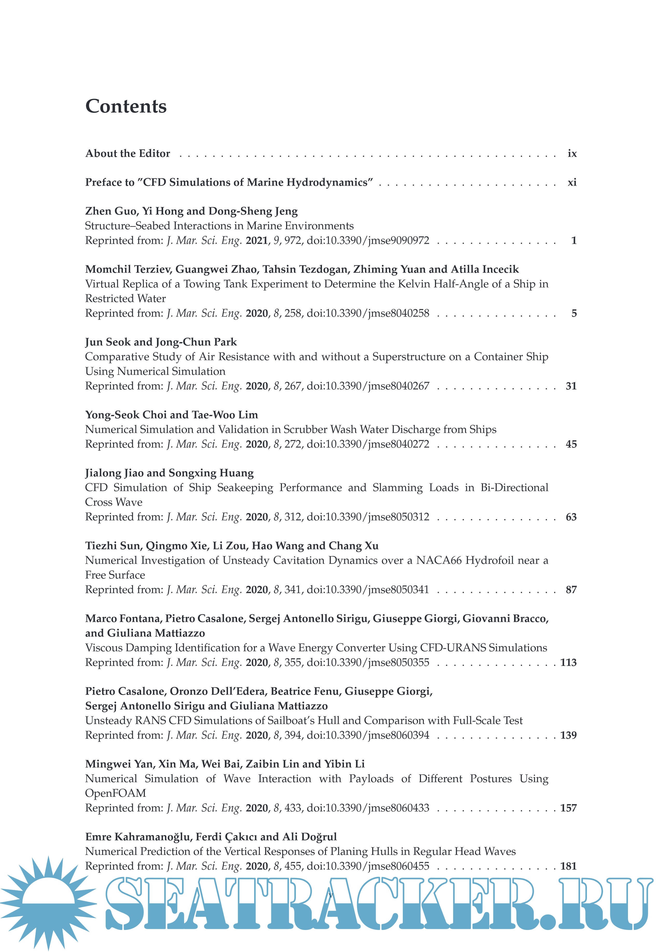 Description: CFD is an emerging area and is gaining popularity due to the availability of ever-increasing computational power. If used accurately, CFD methods may overcome the limitations of experimental and other numerical methods, in some respects. This Special Issue focuses on Computational Fluid Dynamics (CFD) Simulations of Marine Hydrodynamics with a specific focus on the applications of naval architecture and ocean engineering, and it comprises 24 original articles that advance state-of-the-art CFD applications in marine hydrodynamics and/or review the progress and future directions of research in this field. The published articles cover a wide range of subjects relevant to naval architecture and ocean engineering, including but not limited to; ship resistance and propulsion, seakeeping and maneuverability, hydrodynamics of marine renewable energy devices, validation and verification of computational fluid dynamics (CFD), EFD/CFD combined methods, fouling/coating hydrodynamics.