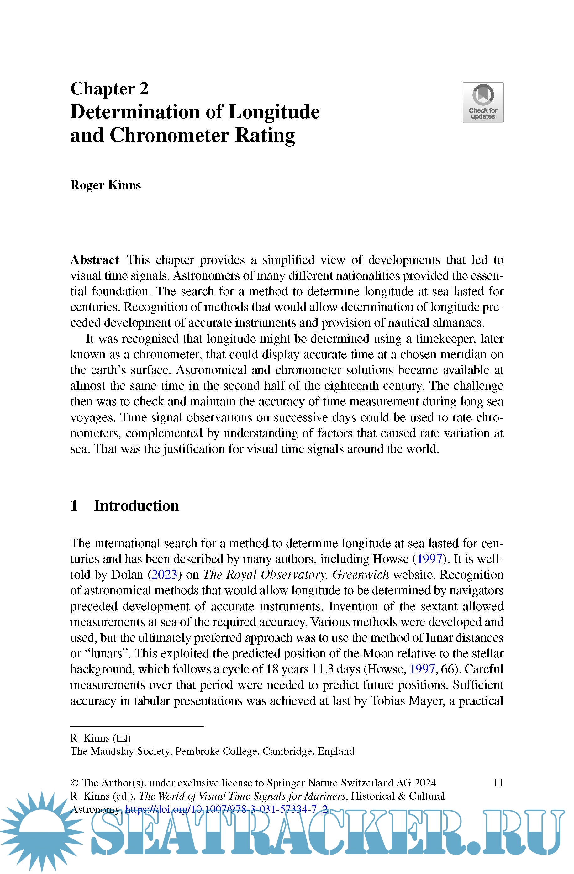 Year: 2024 Language: English Author: Roger Kinns (Editor) Genre: Historical Publisher: Springer Edition: 1st (December 2024) ISBN: 9783031573347 Format: PDF Quality: eBook Pages count: 467 Description: This book describes the worldwide evolution of land-based visual time signals that were used by mariners in the nineteenth and twentieth centuries for accurate navigation at sea. They followed development of chronometers which were carried in ships to show mean time at Greenwich, the chosen prime meridian. Greenwich time could be compared with local astronomical time to determine longitude, but chronometers were mechanical devices that had to be checked for accuracy. Land-based signals that were regulated by astronomical observations evolved from the ideas in 1818 of Robert Wauchope, a British naval officer who served at the Cape of Good Hope. He inspired introduction of time balls, specifically the time ball at Greenwich in 1833 which set the standard for subsequent installations and is still in operation today. The main emphasis is on the external appearance of time signals at different locations around the world and how they were used by mariners for rating chronometers. Time balls and guns also became popular signals for public use and workplace control but then had social and political implications.