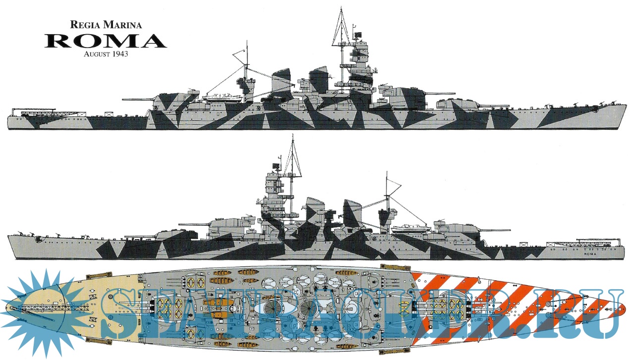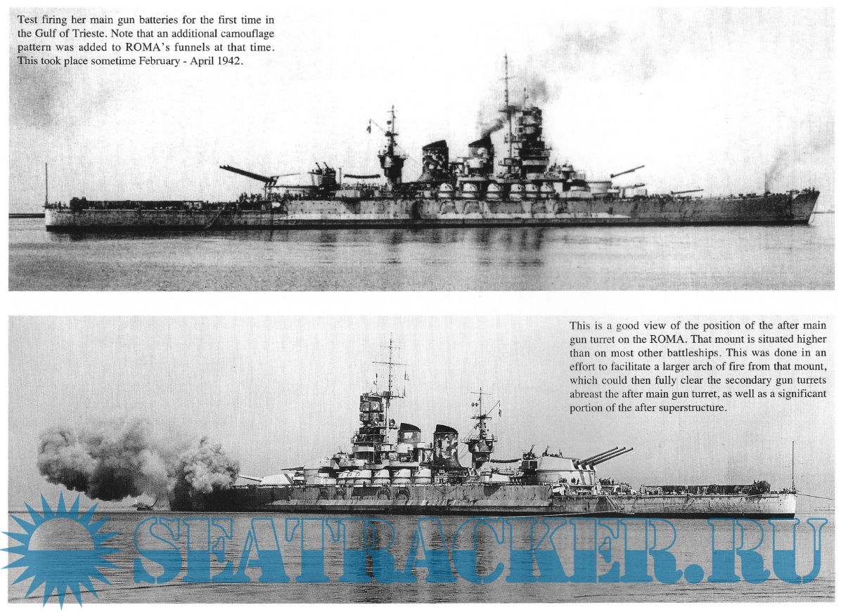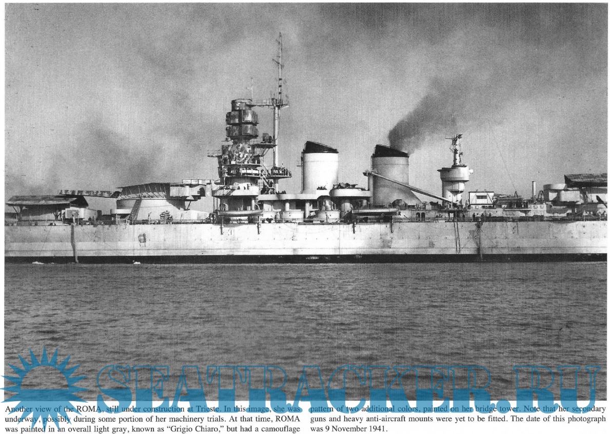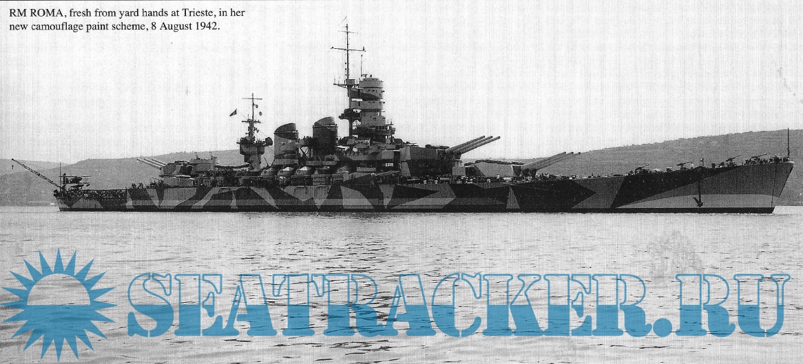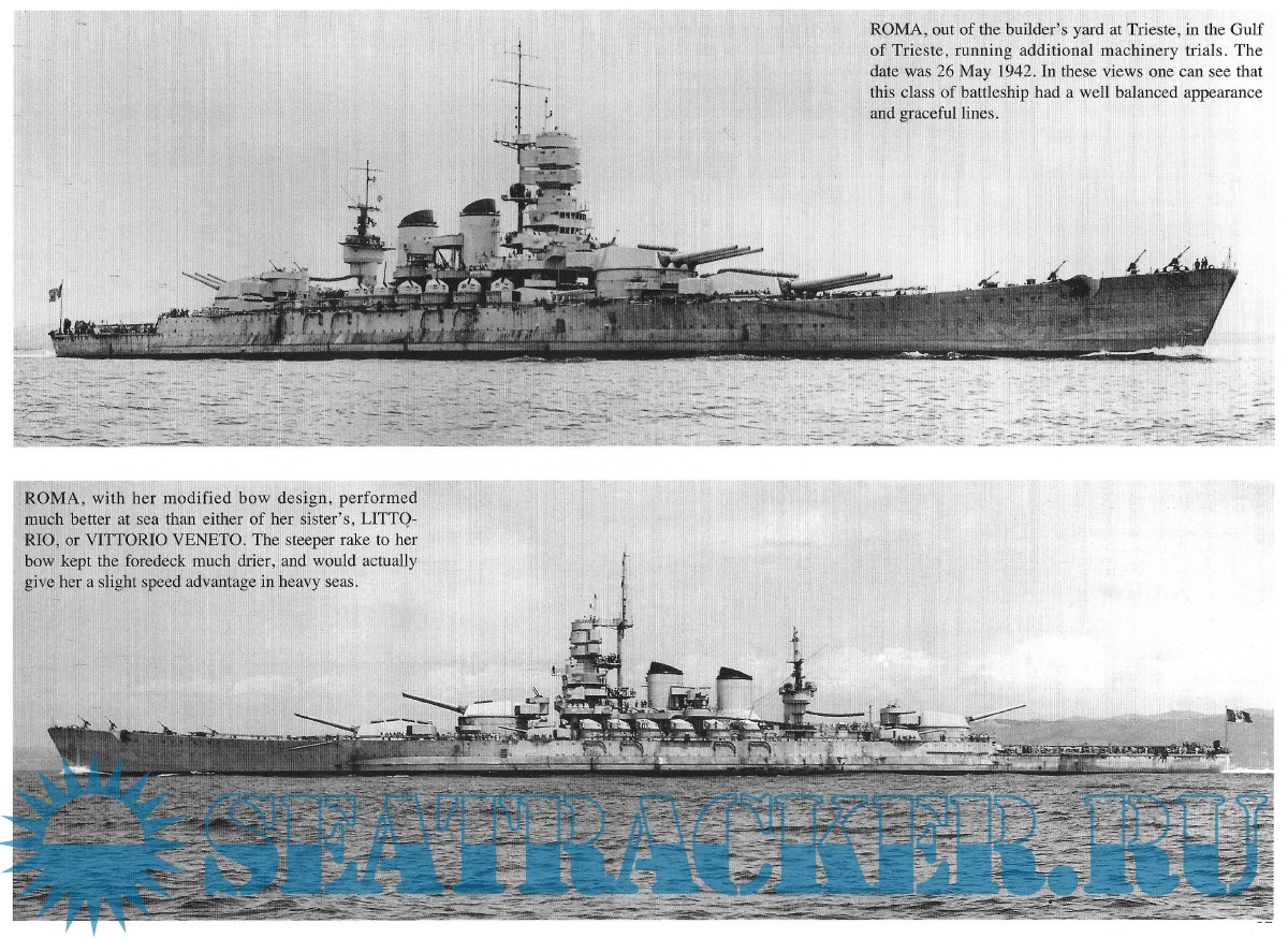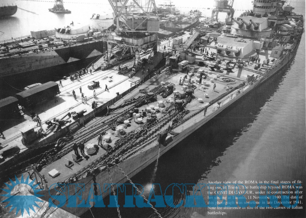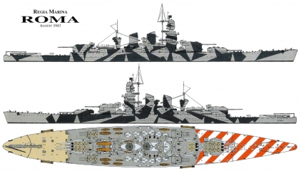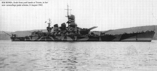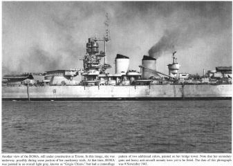 A textual general history, followed by well-captioned photos in loose chronological order; the photos span from Roma's launch to her death from German guided glide bombs- the "Fritz X", or FX-1400.