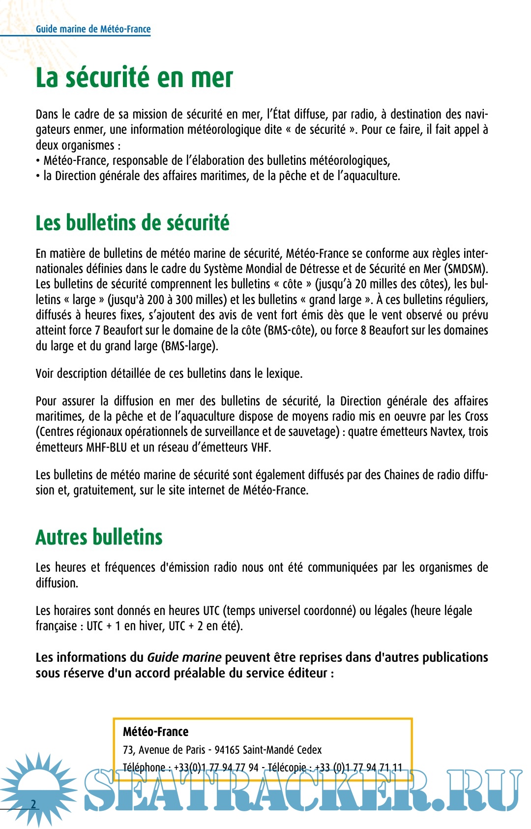 Description: A guide explaining the information for mariners by Meteo-France